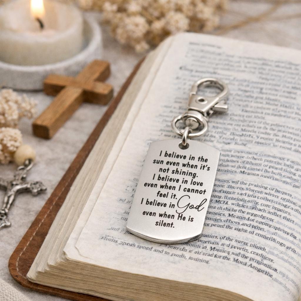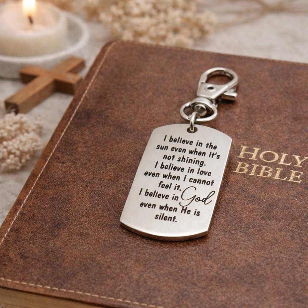Carry a quiet reminder of faith wherever you go. This meaningful clip-on charm from JKCE Designs features a stainless steel engraved message that speaks to belief, hope, and trust—even in moments of silence.