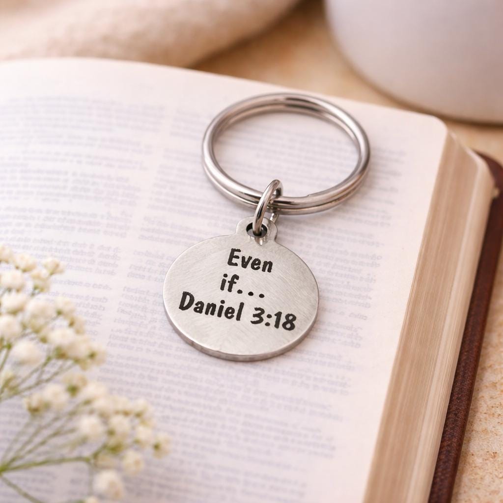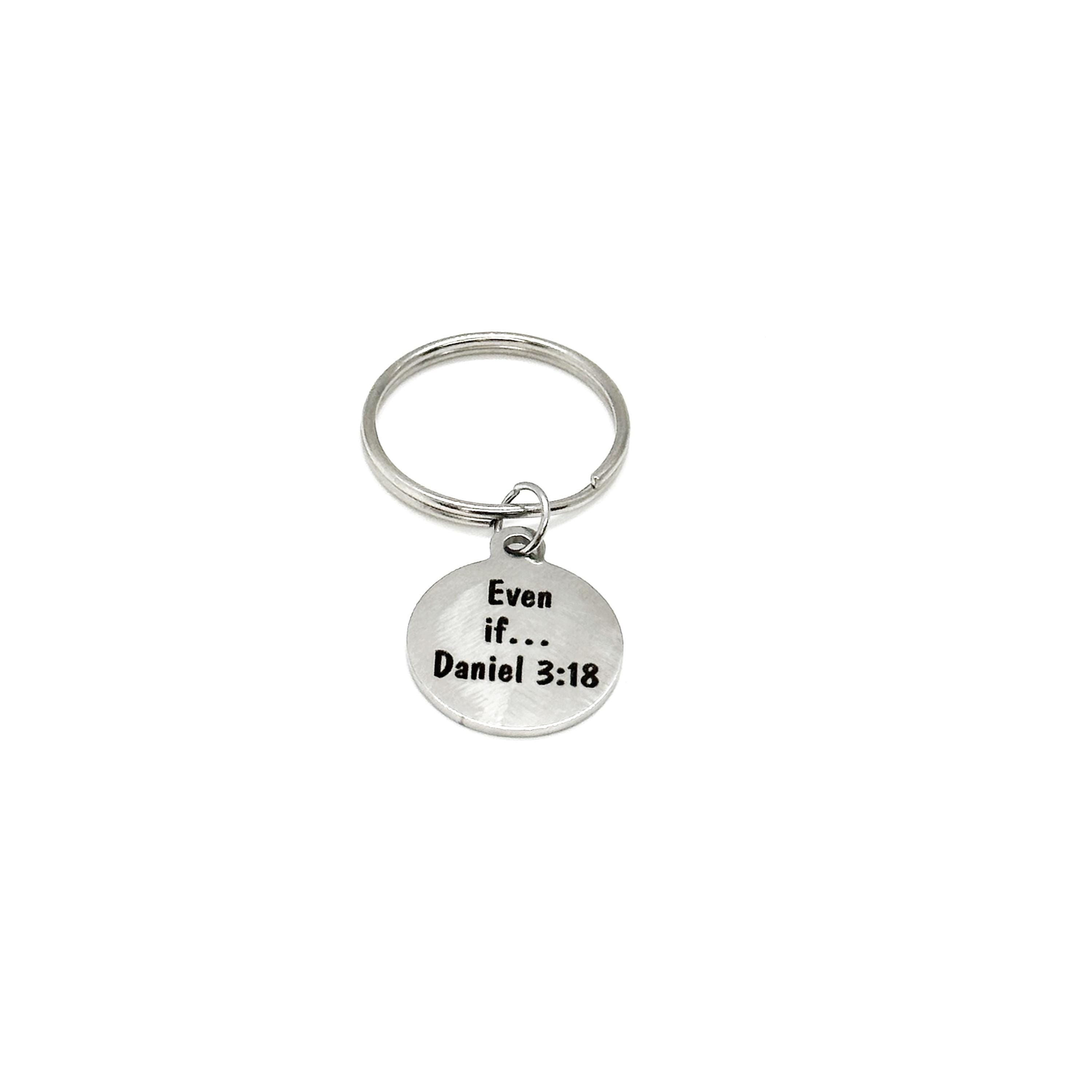 This faith-inspired keychain features the powerful words “Even if… Daniel 3:18”, a reminder of unwavering trust in God regardless of circumstances.