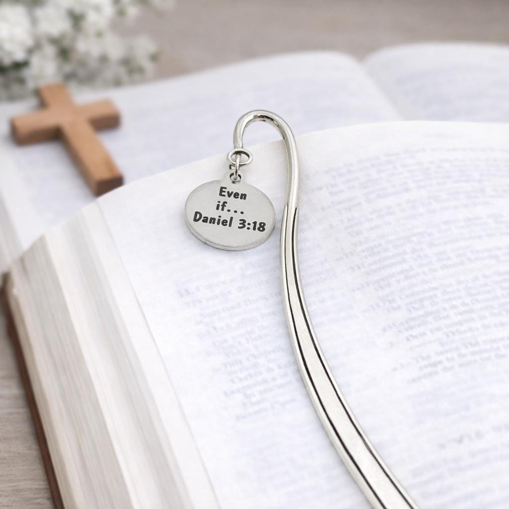 Designed to rest securely over the pages of a Bible or book, this bookmark serves as a quiet reminder of steadfast faith and trust in God, even in uncertain seasons. Its simple design makes it ideal for daily devotionals, Bible study, or personal reading time.