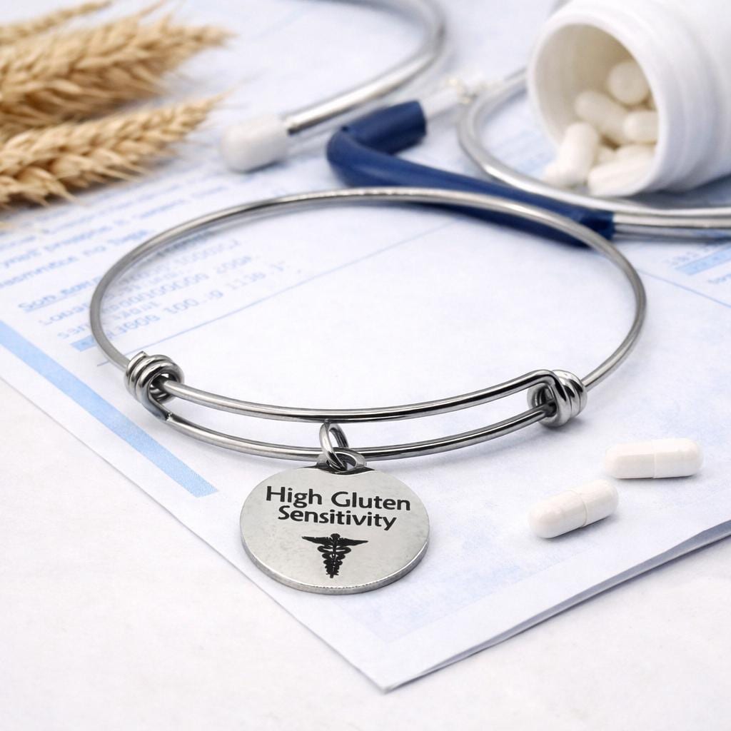 With its clean and minimalist design, this bracelet blends seamlessly with everyday jewelry while serving an important medical purpose. It makes a thoughtful and practical gift for individuals managing gluten sensitivity, caregivers, parents, or loved ones who value preparedness and peace of mind.