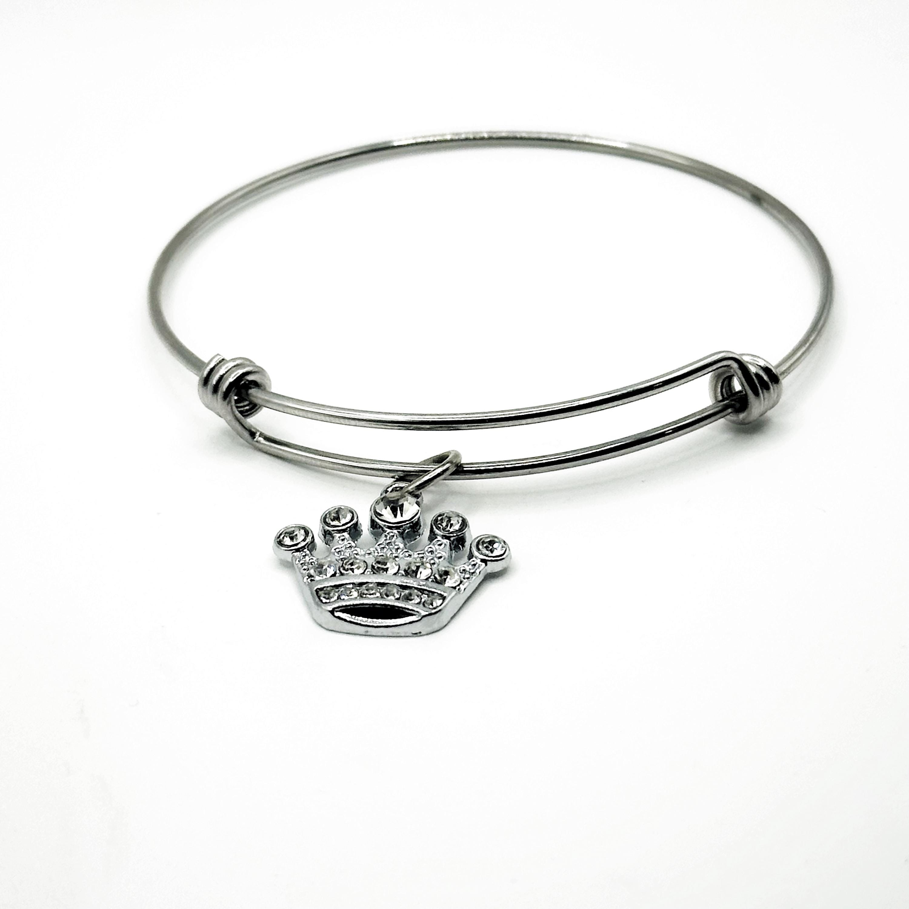 The crown charm features sparkling rhinestones that catch the light beautifully, paired with a sleek stainless steel expanding bangle for a comfortable and timeless fit. Simple yet symbolic, this bracelet is perfect for daily wear, gifting, or moments when you want a reminder of dignity and purpose.