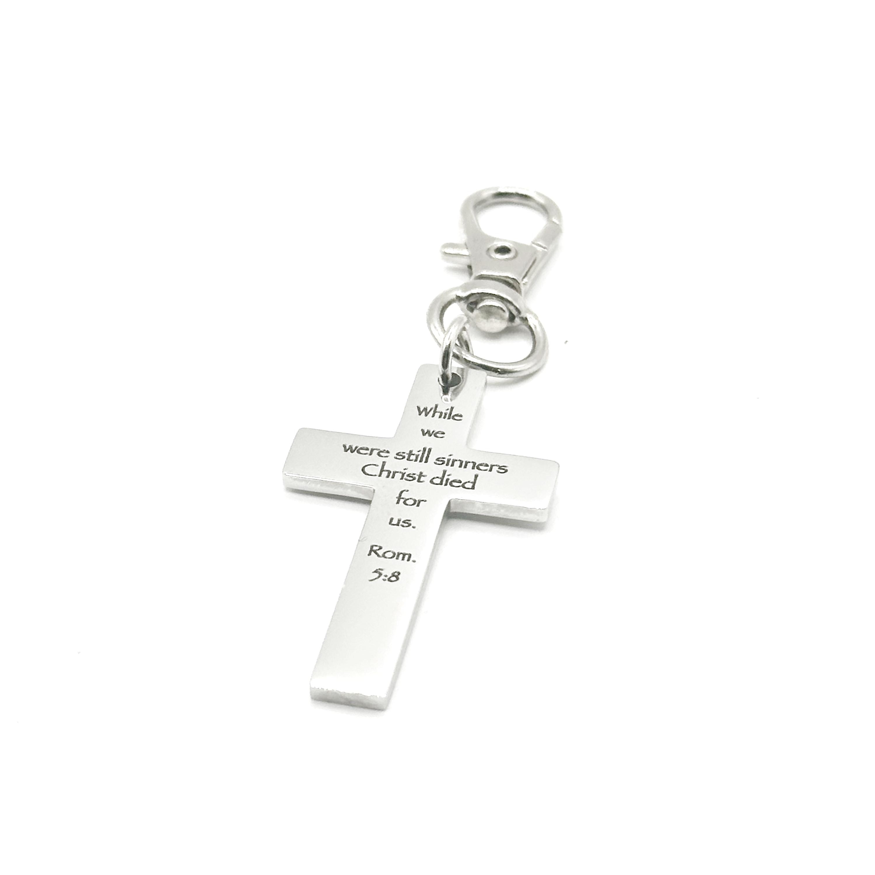This meaningful clip-on charm is a quiet yet powerful reminder of God’s love and sacrifice. Engraved with the words of Romans 5:8, this stainless steel cross charm reflects the heart of the Gospel and serves as a daily expression of faith.