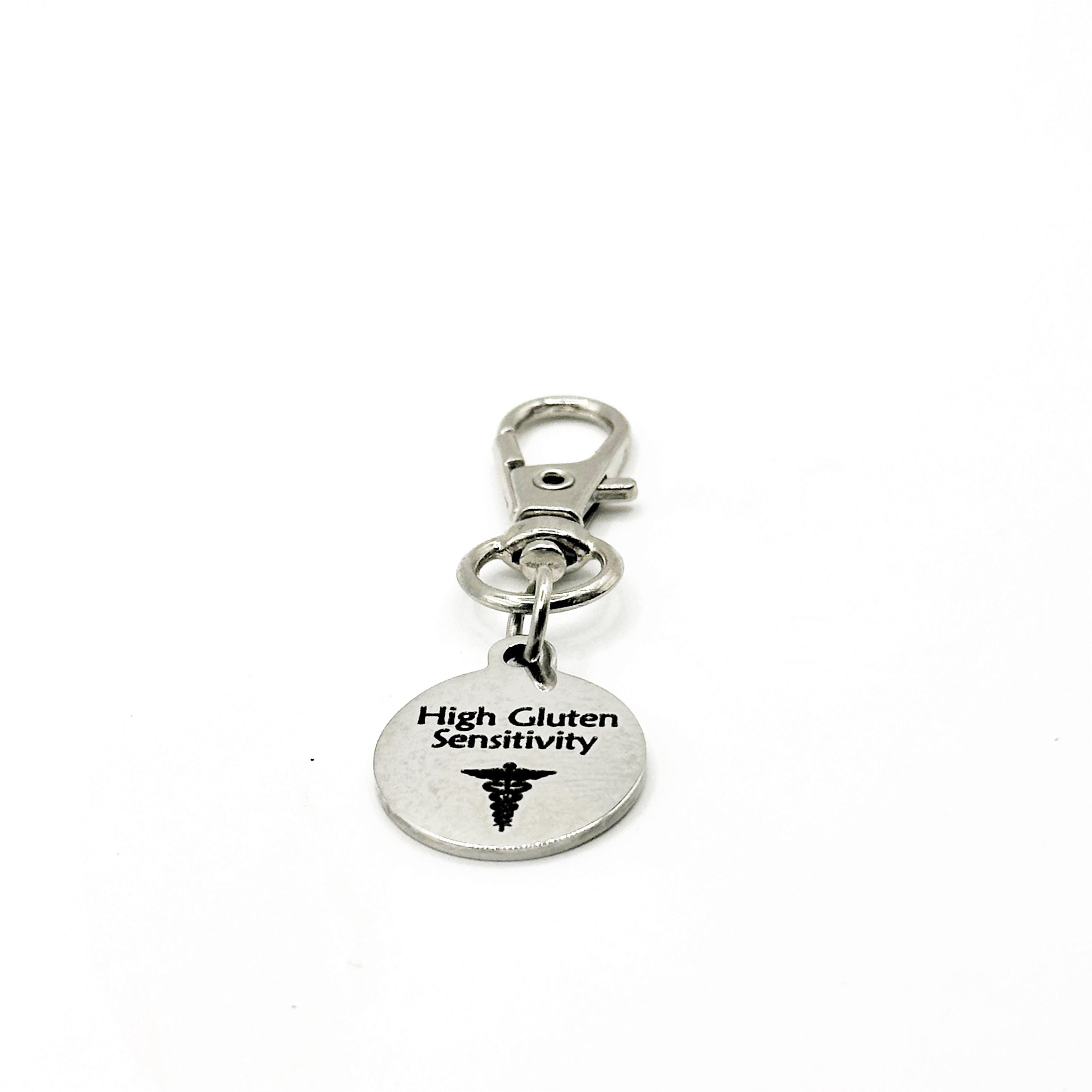 This High Gluten Sensitivity clip-on charm is designed to clearly communicate important dietary sensitivity information in a simple and discreet way. Practical and easy to use, it offers added peace of mind for daily life, travel, school, work, or dining situations.
