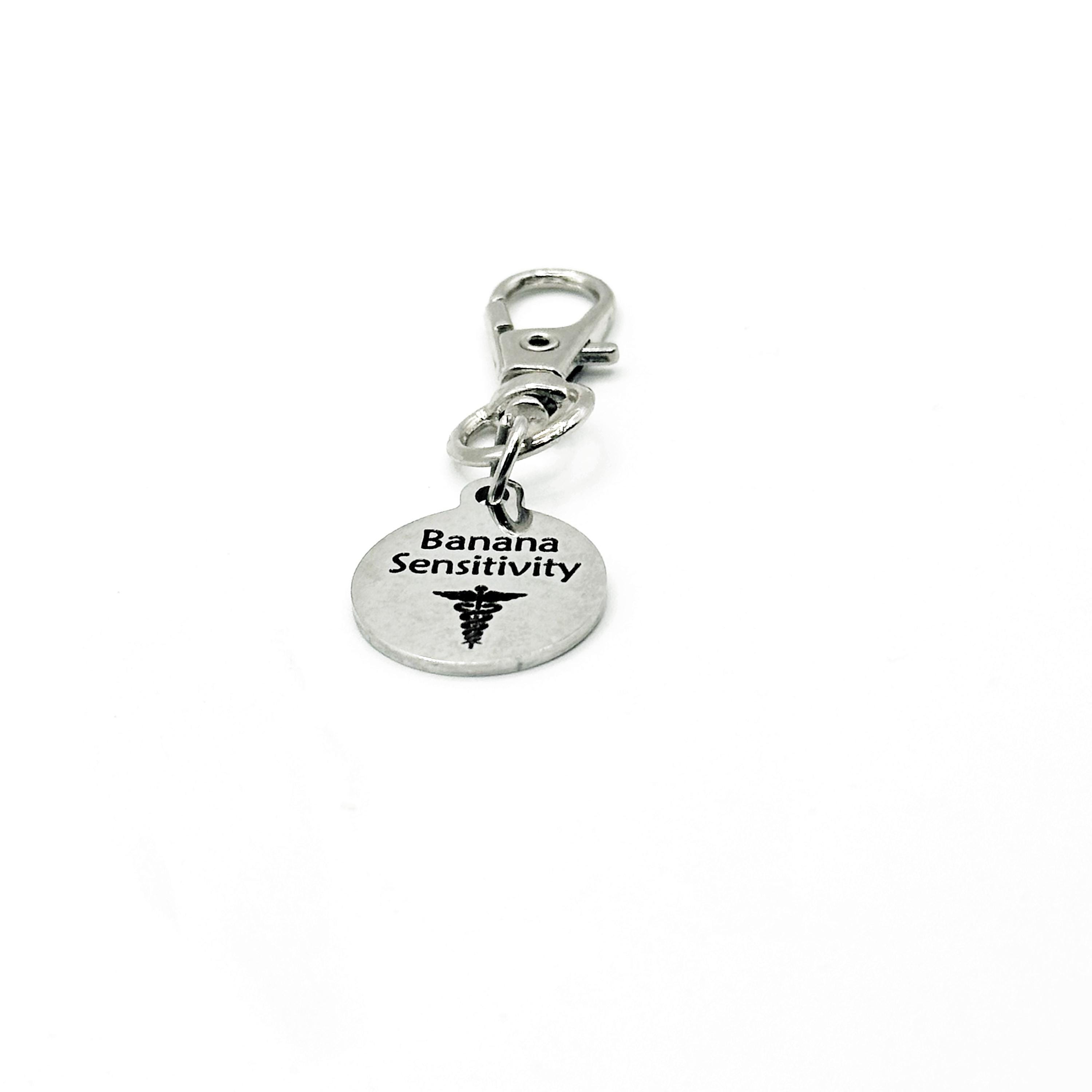 This Banana Sensitivity clip-on charm is a simple and practical way to communicate important dietary information when it matters most. Designed for everyday use, it clips easily to bags, backpacks, purses, lunch bags, or zipper pulls, keeping vital information visible without being intrusive.