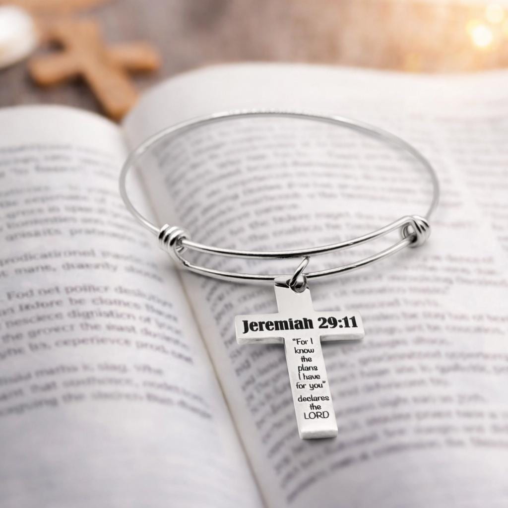 Carry a powerful reminder of God’s promise with this Jeremiah 29:11 cross charm bracelet from JKCE Designs. The stainless steel cross is engraved with: Jeremiah 29:11 "For I know the plans I have for you" declares the LORD, offering daily encouragement and faith-filled reassurance.