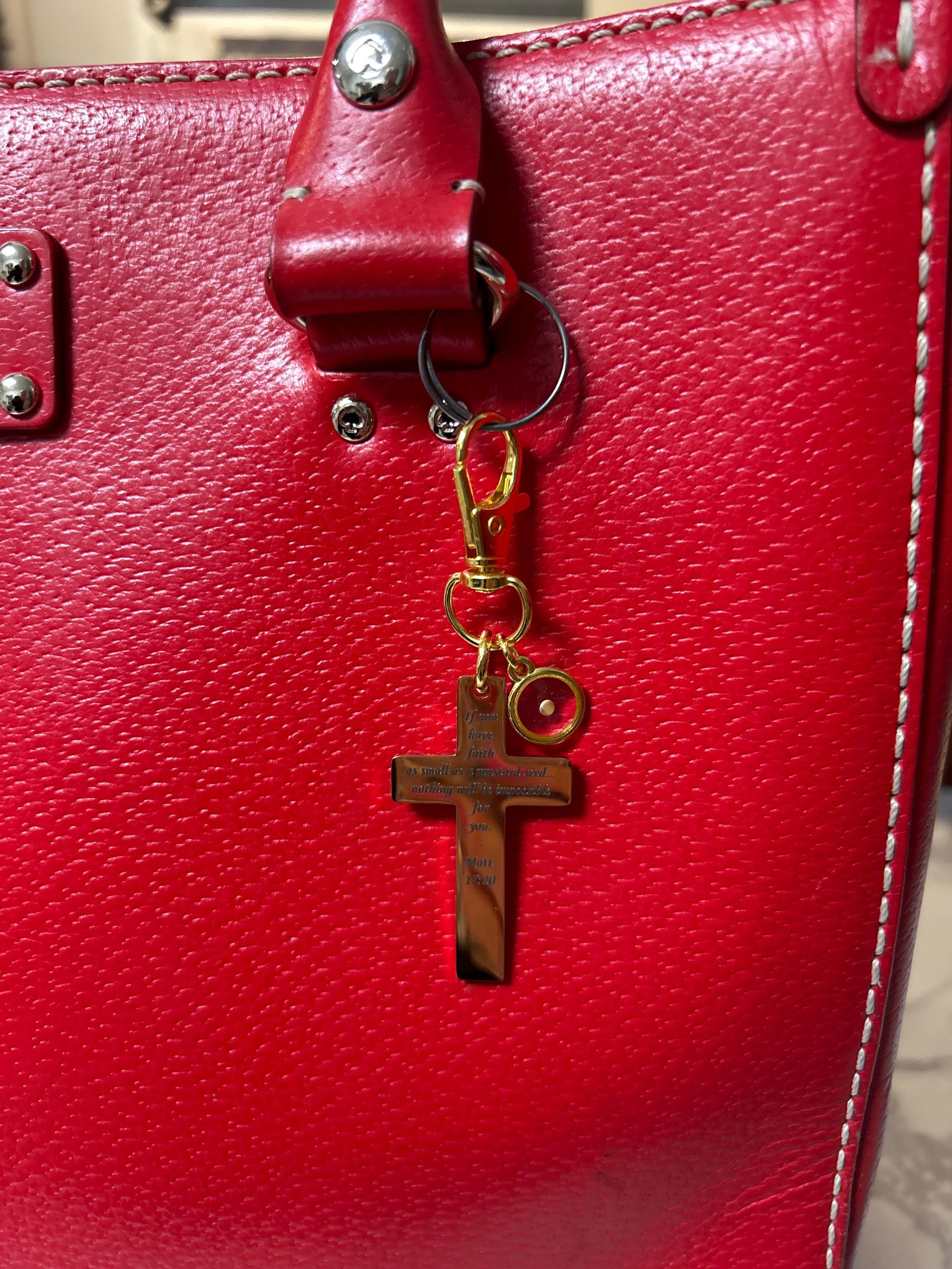Carry a reminder that even the smallest faith can move mountains. This JKCE Designs gold-plated stainless steel cross clip on charm is engraved exactly as shown with the powerful words: "If you have faith as small as a mustard seed... nothing will be impossible for you. Matt. 17:20" Measuring 1 5/8 inch in length and 1 inch in width, the cross is paired with a 32mm alloy lobster clasp for easy attachment to bags, purses, keys, planners, or zippers. An 11mm resin charm featuring a real mustard seed completes this meaningful design. Thoughtful and faith-forward, it makes a heartfelt gift for encouragement, baptism, confirmation, or everyday inspiration. To preserve its finish, avoid moisture and harsh chemicals and store in a dry place when not in use.