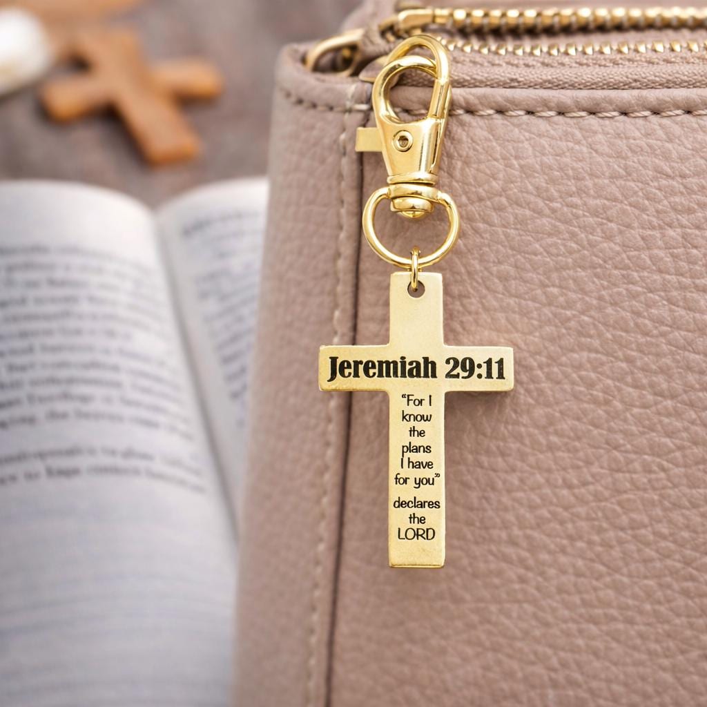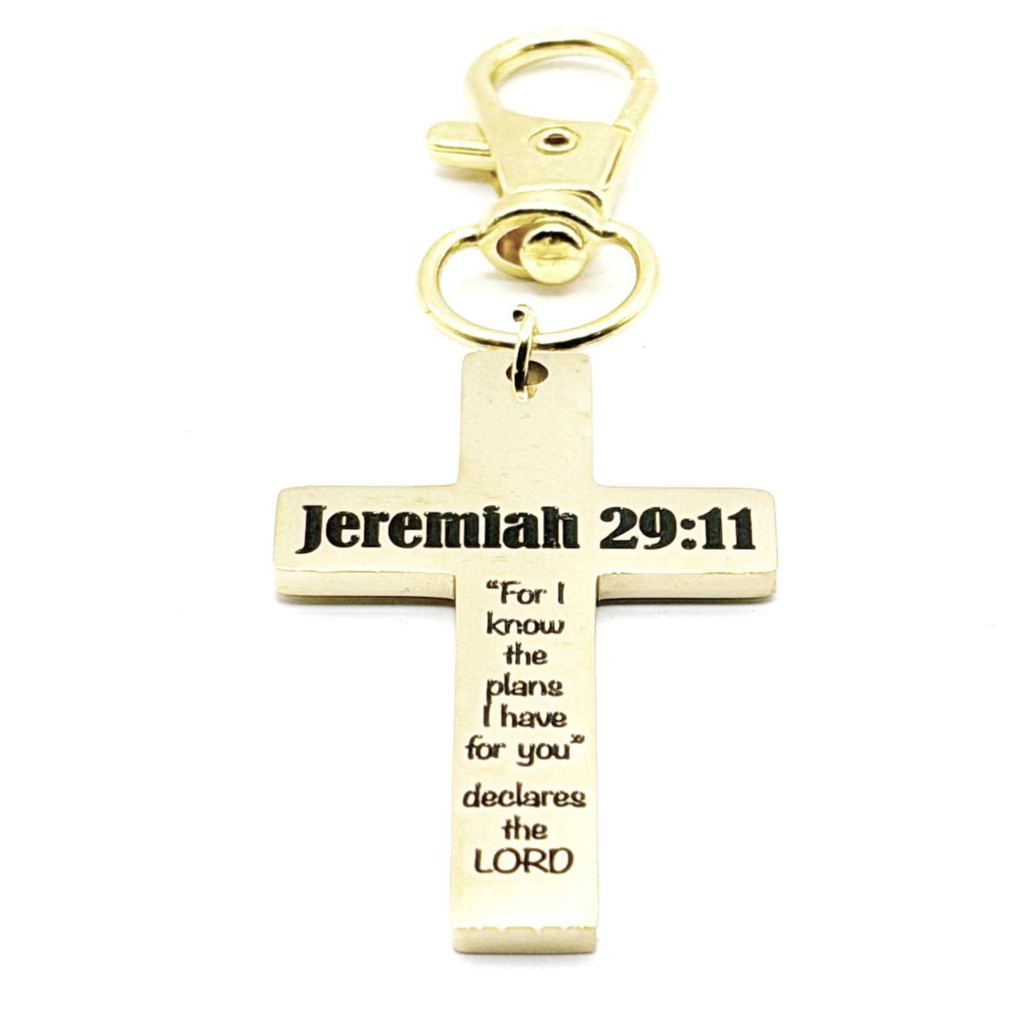 Carry a radiant reminder of God’s promise with this Jeremiah 29:11 gold plated cross clip on charm from JKCE Designs. The gold-plated stainless steel cross is engraved with: Jeremiah 29:11 "For I know the plans I have for you" declares the LORD, offering daily encouragement and hope wherever you go.