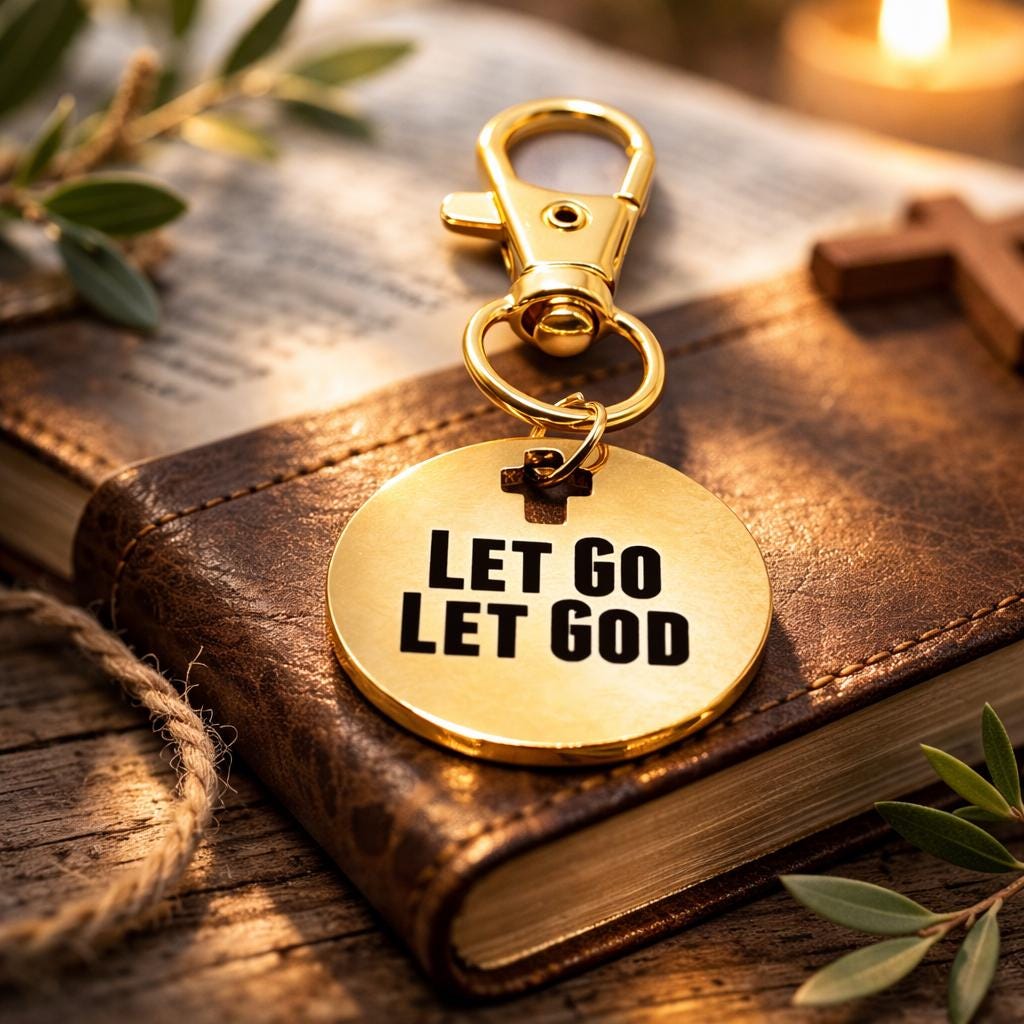 Carry a daily reminder of faith wherever you go with this Let Go Let God gold-plated clip on charm. Crafted from gold-plated stainless steel, this 25mm round charm features a cross cutout at the top and attaches securely with a 32mm alloy lobster clasp. The smooth finish and bold engraved message create a meaningful statement piece that clips easily to purses, backpacks, key rings, planners, or zipper pulls.