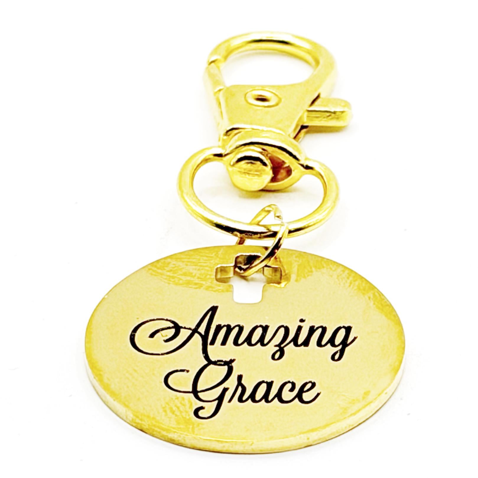 Carry a beautiful reminder of faith wherever you go with this Amazing Grace gold-plated cross clip on charm. This 25mm gold-plated stainless steel charm features the engraving Amazing Grace and is designed with a cross cutout where it connects to a secure 32mm alloy lobster clasp.