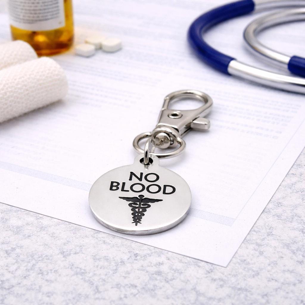 Featuring the engraved message NO BLOOD, this charm serves as an important alert for first responders and caregivers in emergency situations. Its clean, highly visible design ensures the message is easily recognized when it matters most.