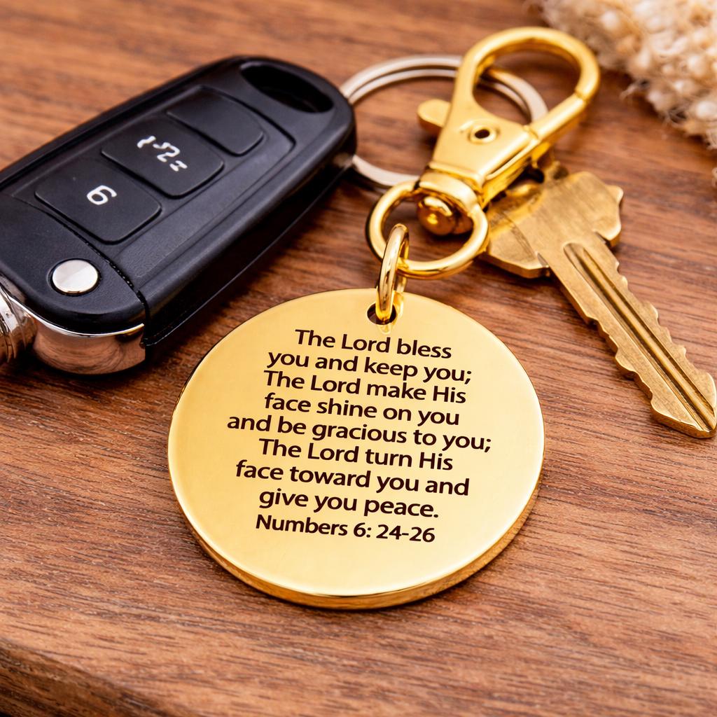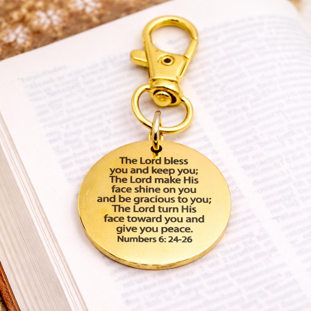 Carry a meaningful reminder of God’s blessing wherever you go with this gold-plated stainless steel clip-on charm featuring the powerful words of Numbers 6:24-26. The engraved message reads exactly: The Lord bless you and keep you; The Lord make His face shine on you and be gracious to you; The Lord turn His face toward you and give you peace. Numbers 6:24-26. Crafted from durable gold-plated stainless steel, this 25mm charm is paired with a 32mm alloy lobster clasp for easy attachment to keys, bags, backpacks, or purses. Its warm gold finish adds an elegant touch while keeping your faith close throughout the day. Thoughtful and faith-filled, it makes a meaningful gift for encouragement, birthdays, or special occasions. To maintain its shine, avoid exposure to harsh chemicals and store in a dry place when not in use.
