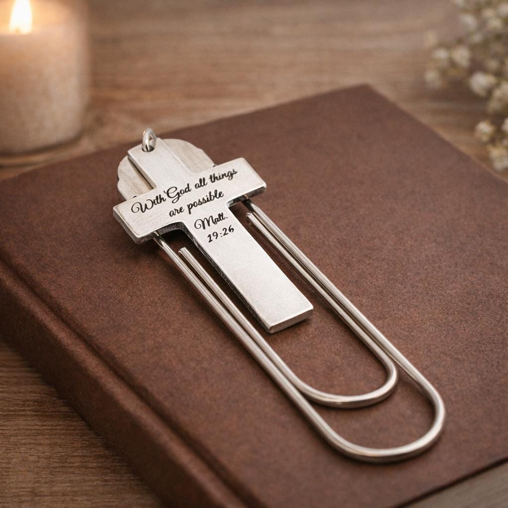 Designed with both meaning and simplicity in mind, this bookmark is a thoughtful way to keep your place while reflecting on God’s promises. The sleek stainless steel charm paired with the durable alloy paperclip creates a timeless and functional piece perfect for everyday use.