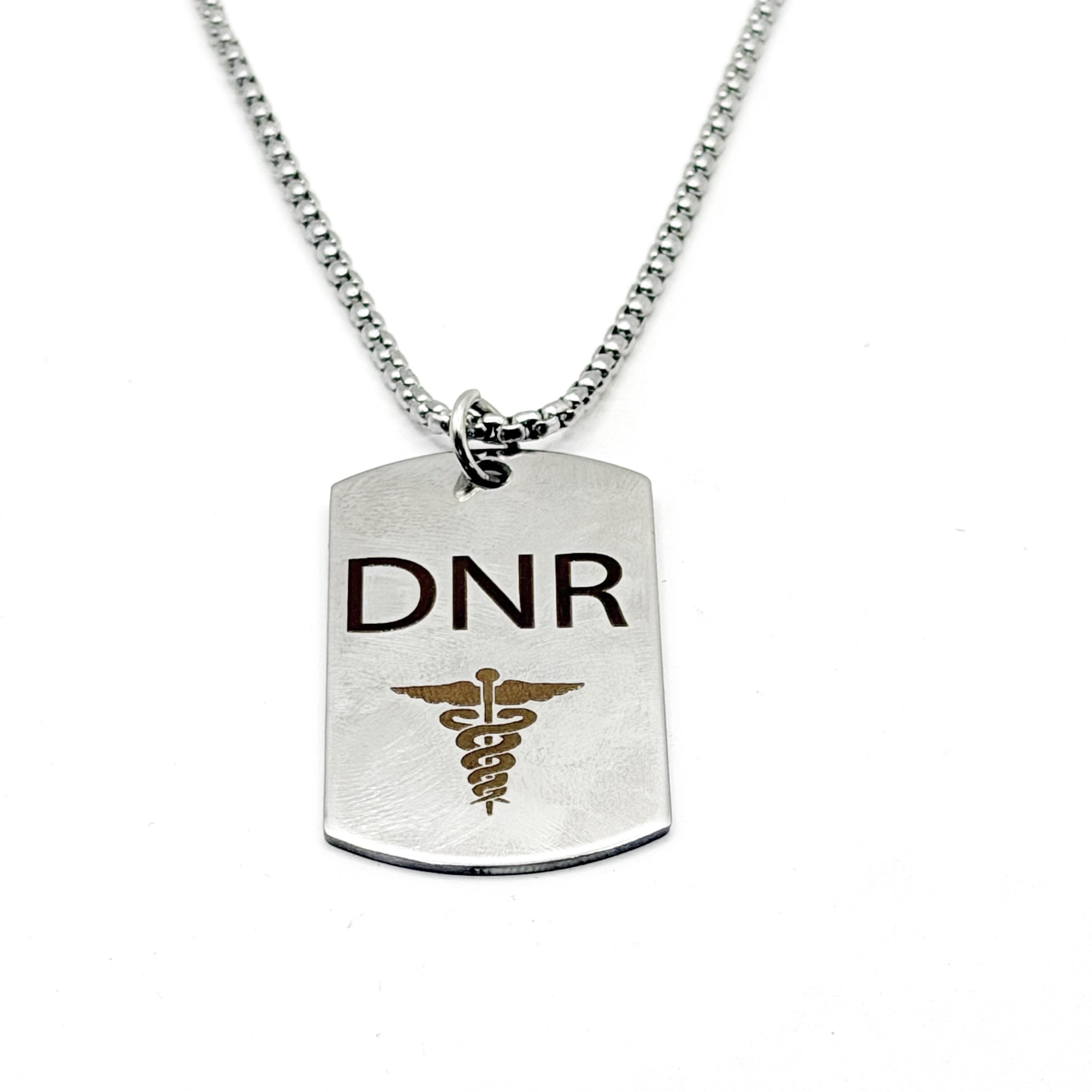 With its clean, polished finish and medical-focused design, this necklace offers both function and reassurance. It makes a meaningful and practical piece for those who want their medical preferences clearly known, or for loved ones seeking a thoughtful and supportive gift. Stainless steel is strong, tarnish-resistant, and ideal for daily wear. To care for your necklace, gently clean with a soft cloth and avoid harsh chemicals to maintain its finish.