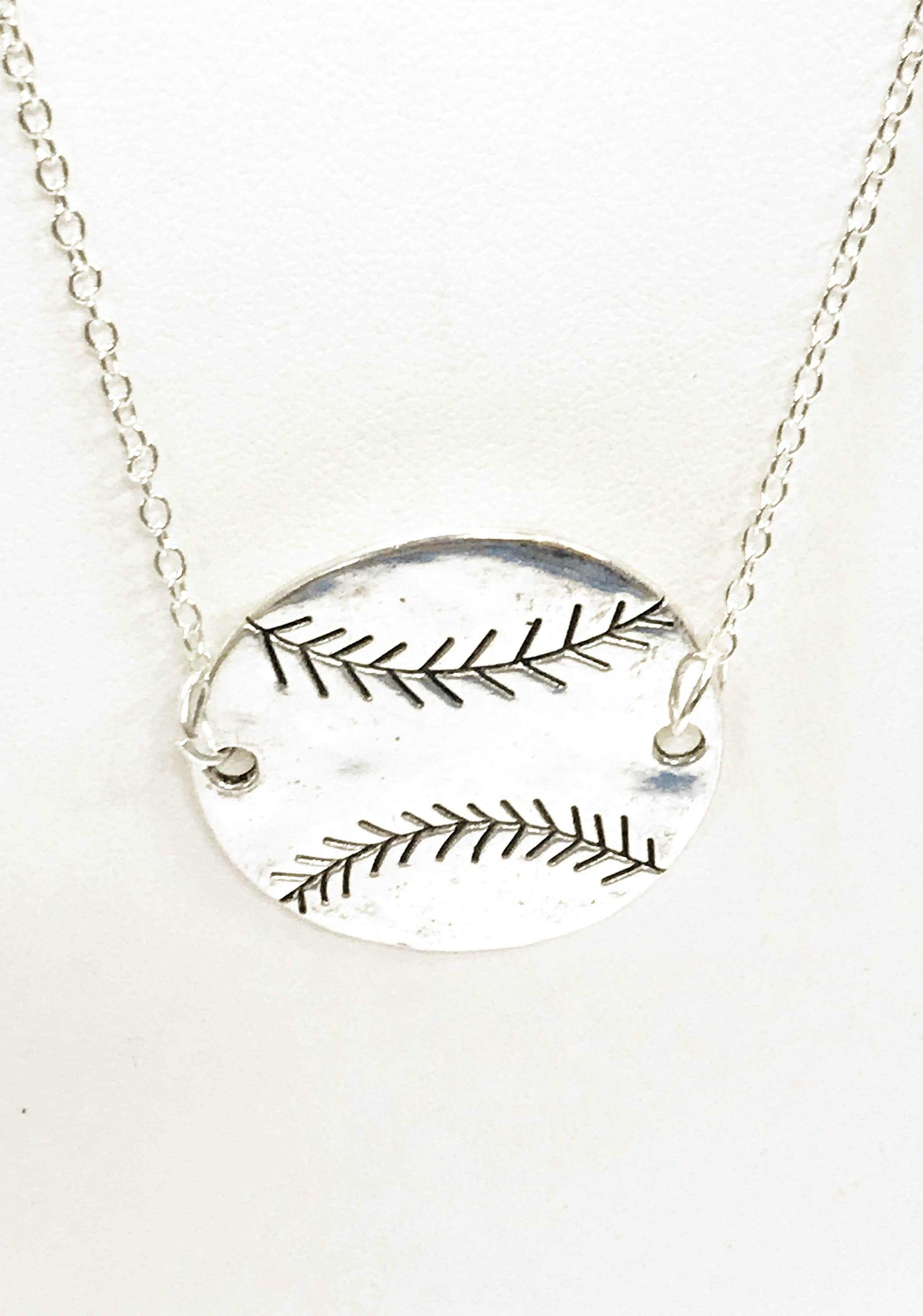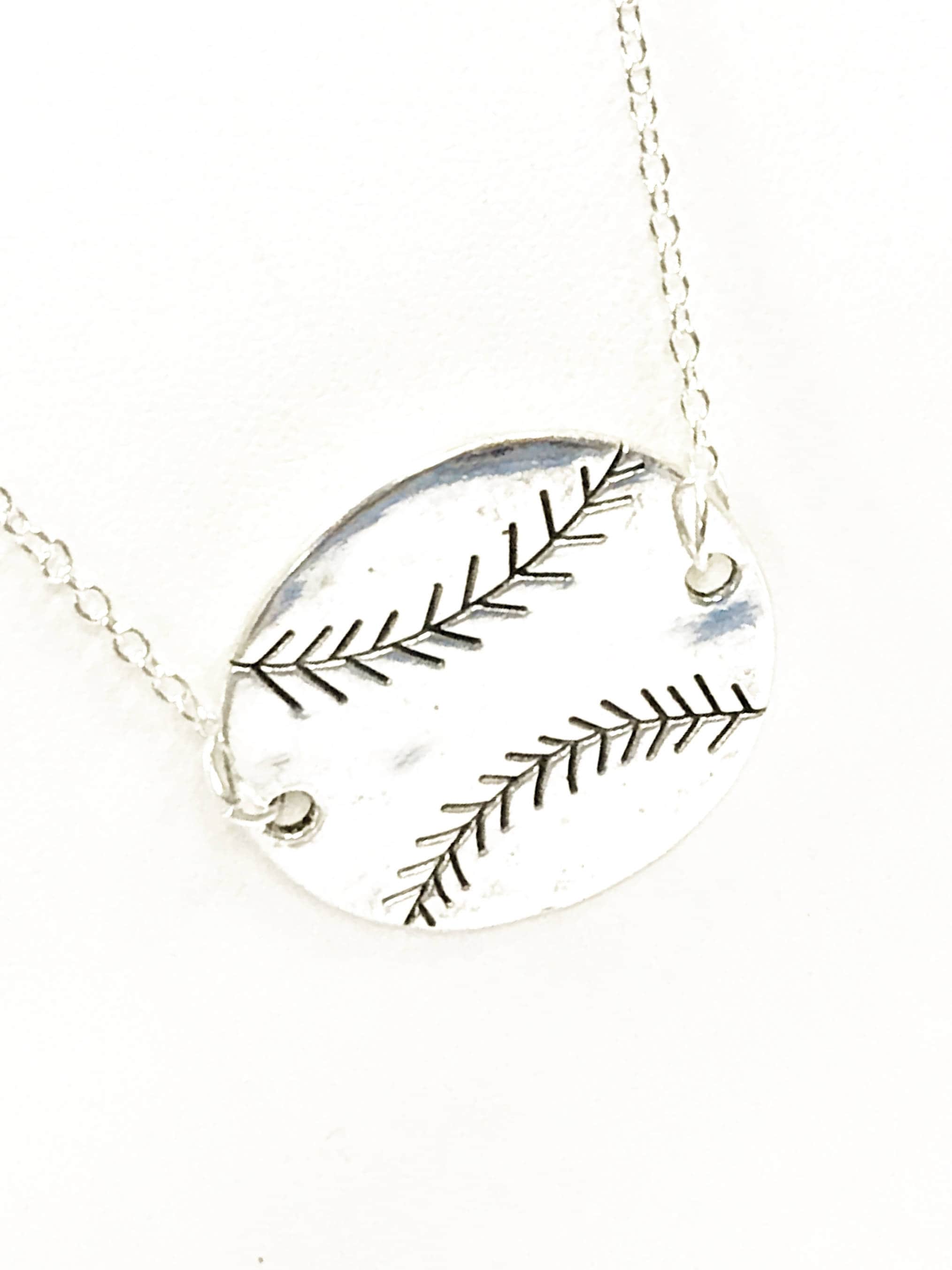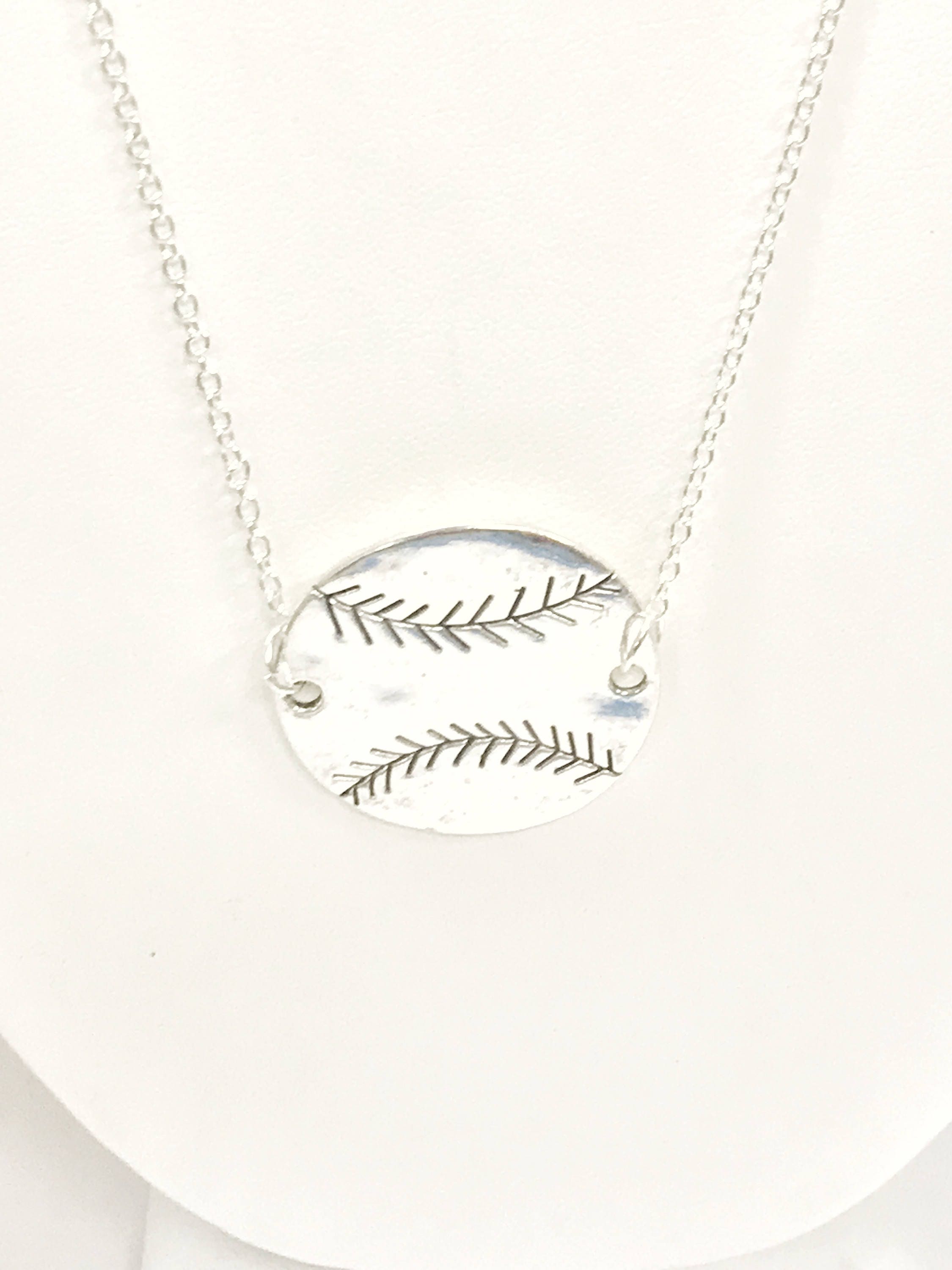 Show your love for baseball or your baseball player with this silver tone baseball pendant necklace on your choice of 16, 18, 20, 22, 24, 26, 28 or 30 inch silver plated chain. This would be a great gift for yourself another baseball mom or baseball fan!