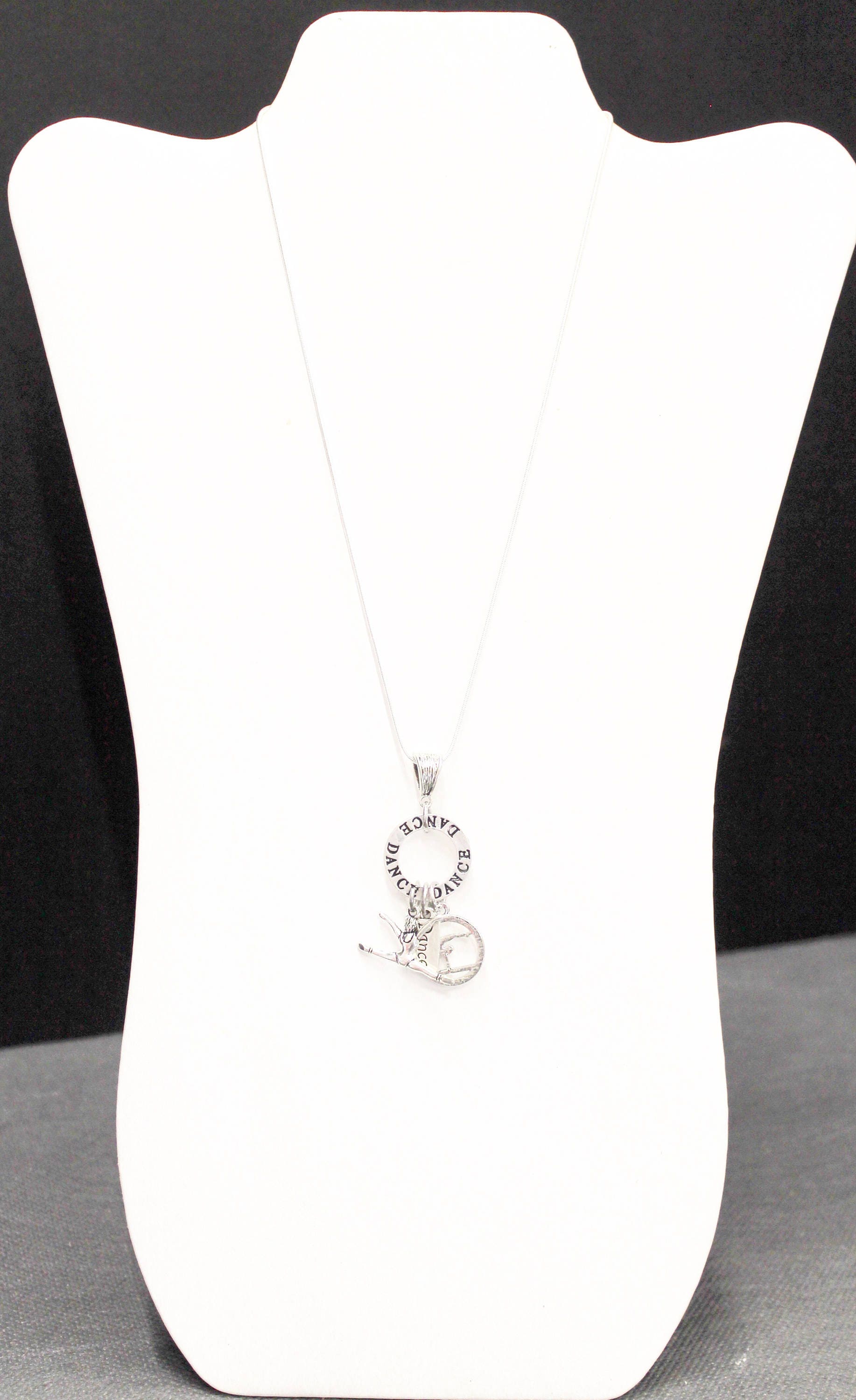 This is a great dance pendant! It is a silver tone pendant on a sterling silver plated snake chain. This would be a great gift for yourself or a gift for someone you that loves to dance! It is also a great way to show that you love dance or are a proud dance mom! This pendant is available on your choice of 16, 18, 20, 22, 24, 26, 28 or 30 inch sterling silver plated snake chain. The pendant is also available for individual purchase if you have another necklace on which you would like to wear it.