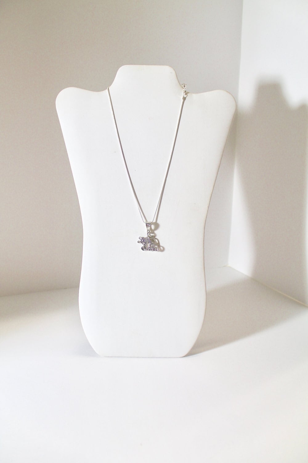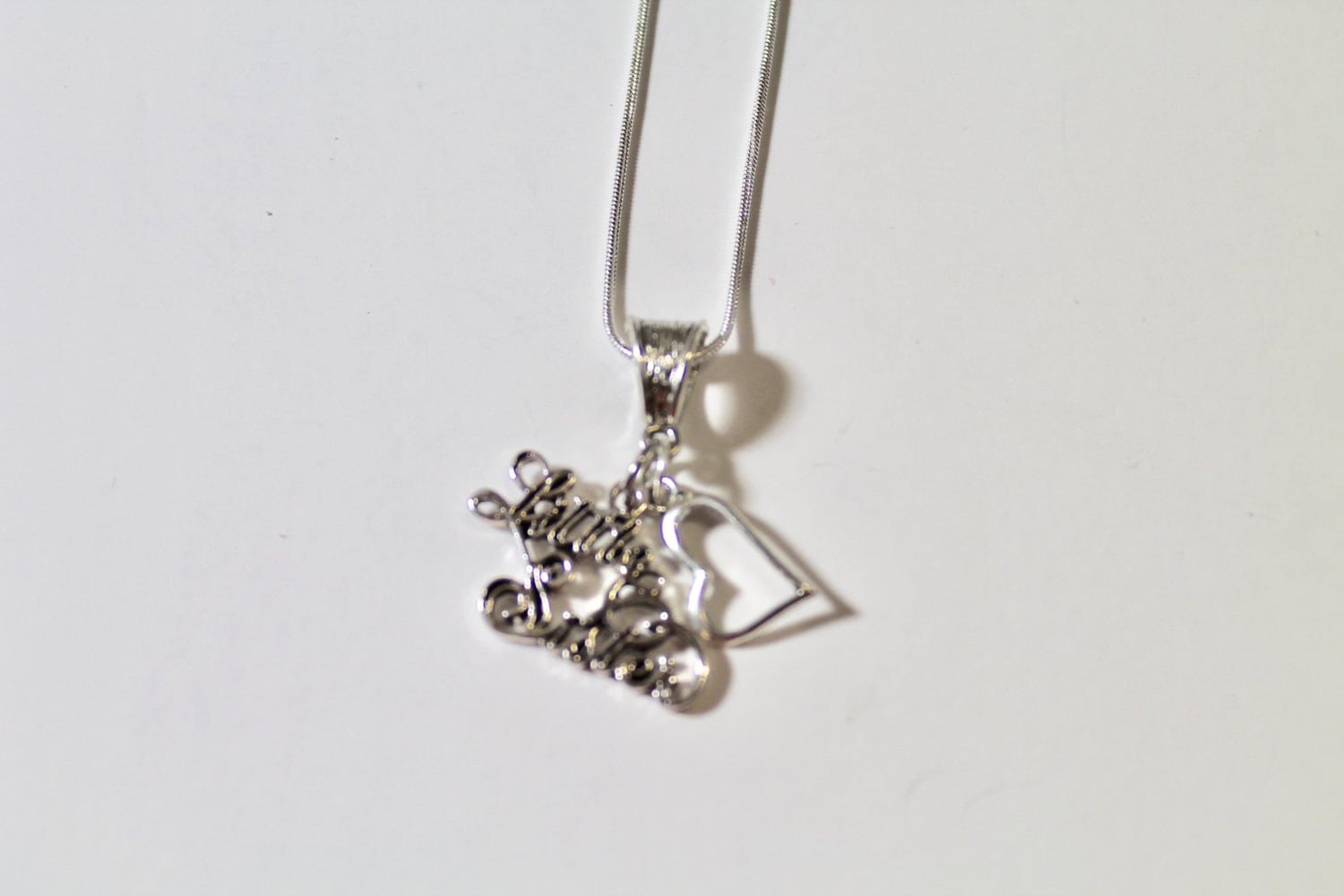 This is a beautiful necklace to show that you are a proud little sister. This pendant is available on your choice of 16, 18, 20, 22, 24, 26, 28 or 30 inch chain. The pendant is also available for individual purchase if you have another chain that you would like to wear it on.