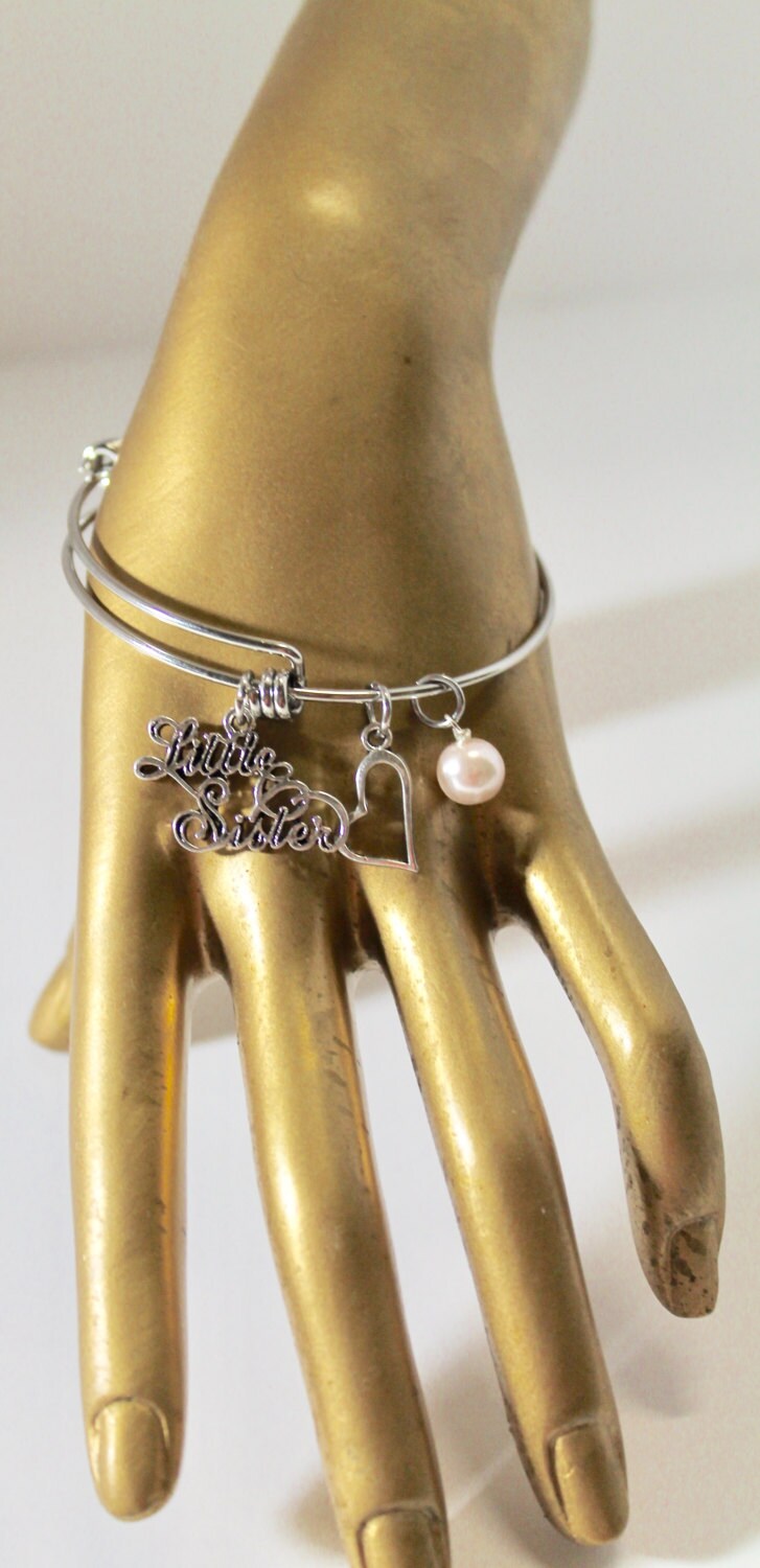 This is a great gift for your little sister! It can be used for a family or sorority / fraternity little sister. It is available on your choice of either a silvertone alloy metal bracelet or stainless steel bracelet. If you would like a colored stone or some other customization, please send me a message and I will work with you to make this the perfect item for you!