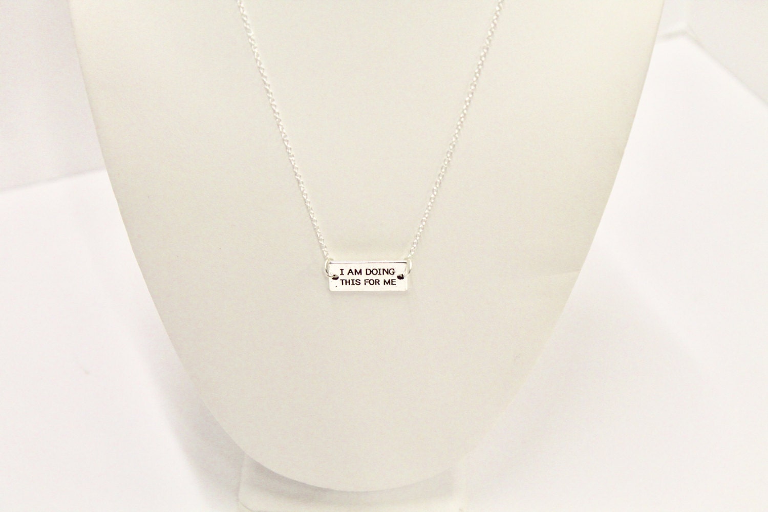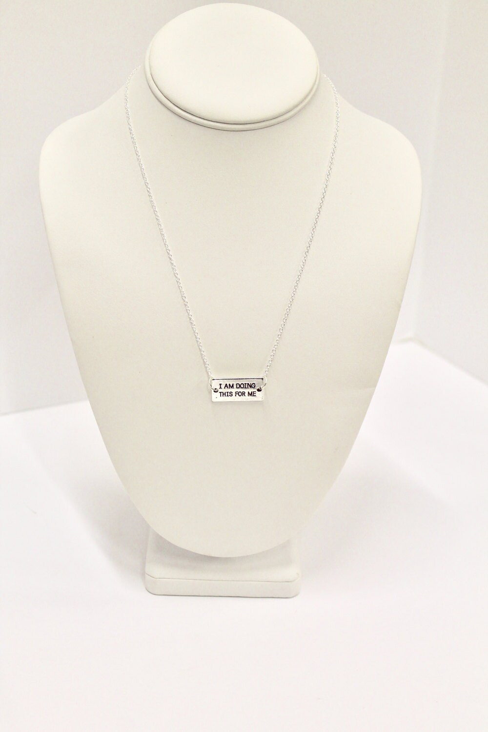 Simple "I Am Doing This For Me" connector pendant on your choice of a 16, 18, 20, 22, 24, or 26 inch sterling silver plated chain. This necklace would be a great gift to yourself or someone you love that is undertaking a difficult task, but doing it for the betterment of themselves!