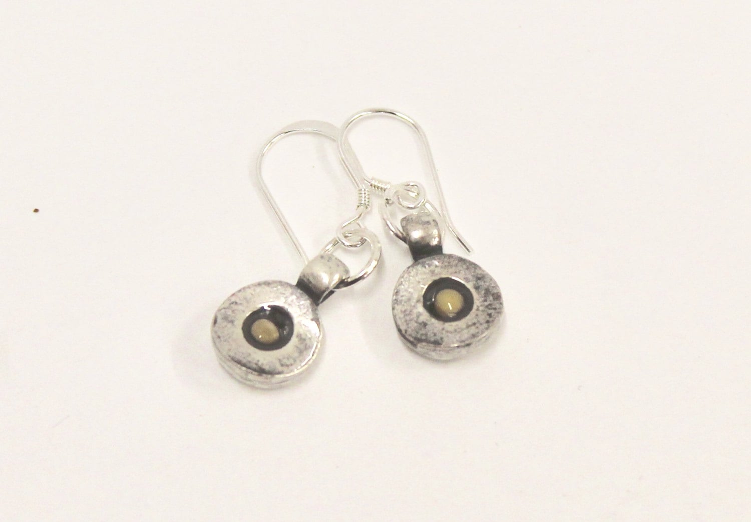 This is a unique and great statement earrings. They are made to represent mustard seed faith as described in Matthew 17:20. These would be great earrings to remind yourself or someone that you love that you can move mountains with faith as small as a mustard seed. The drop is a silvertone metal and are place on sterling silver earwires.