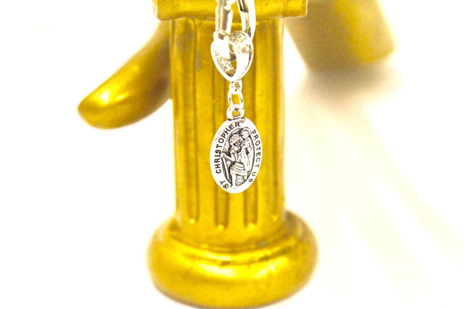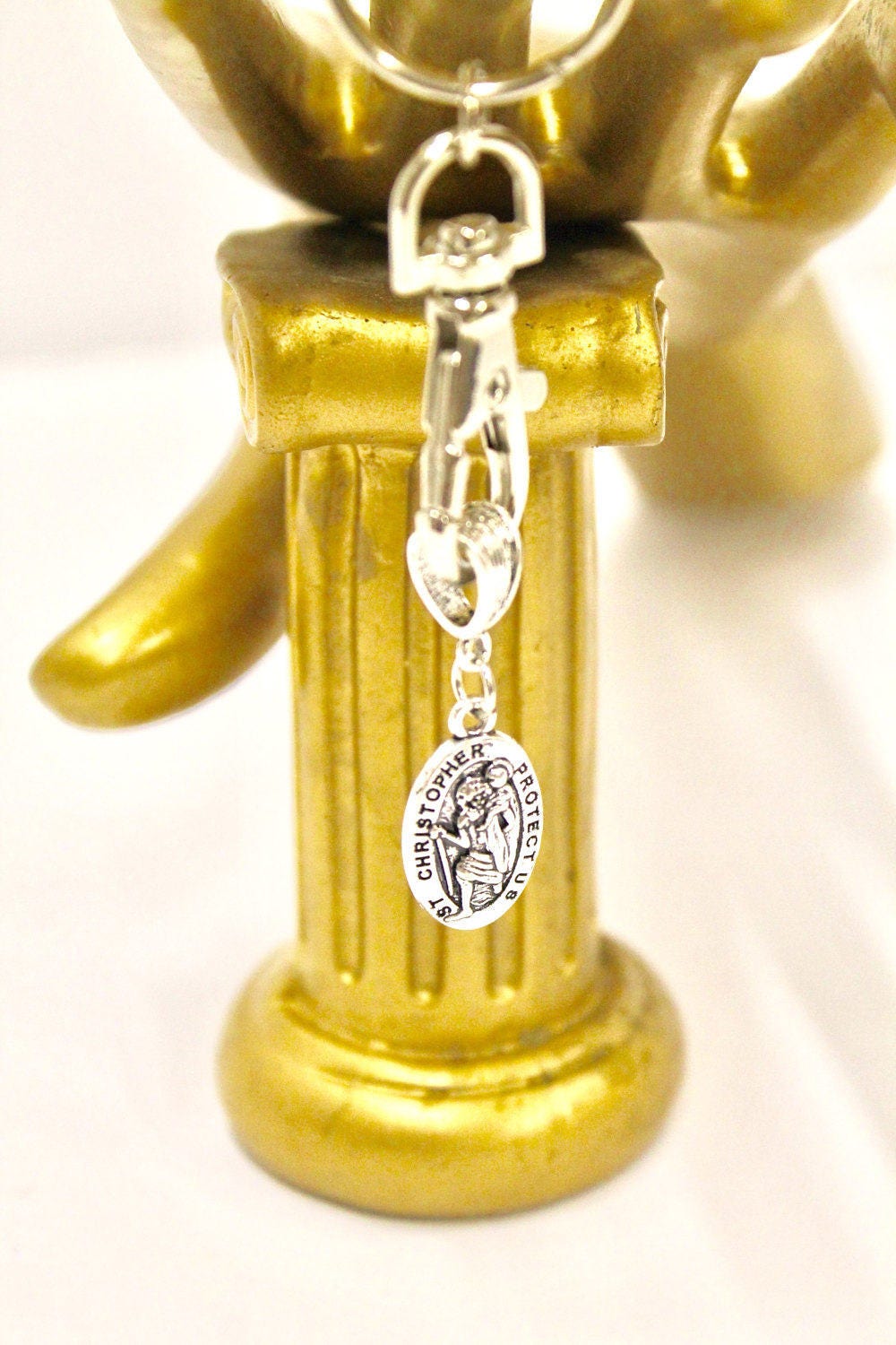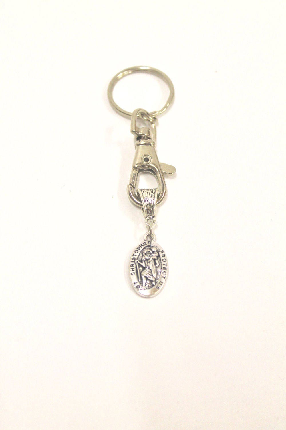 This keyring has a St. Christopher charm. St. Christopher is known as the patron saint of travel or transportation. This would be a great inspirational gift for someone going on a trip or new adventure in life. The charm on this keychain measures approx. 7/8 inch by 1/2 inch (23mm x 13mm)