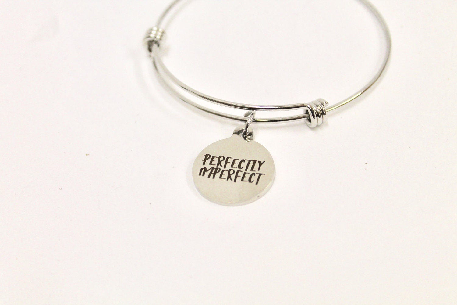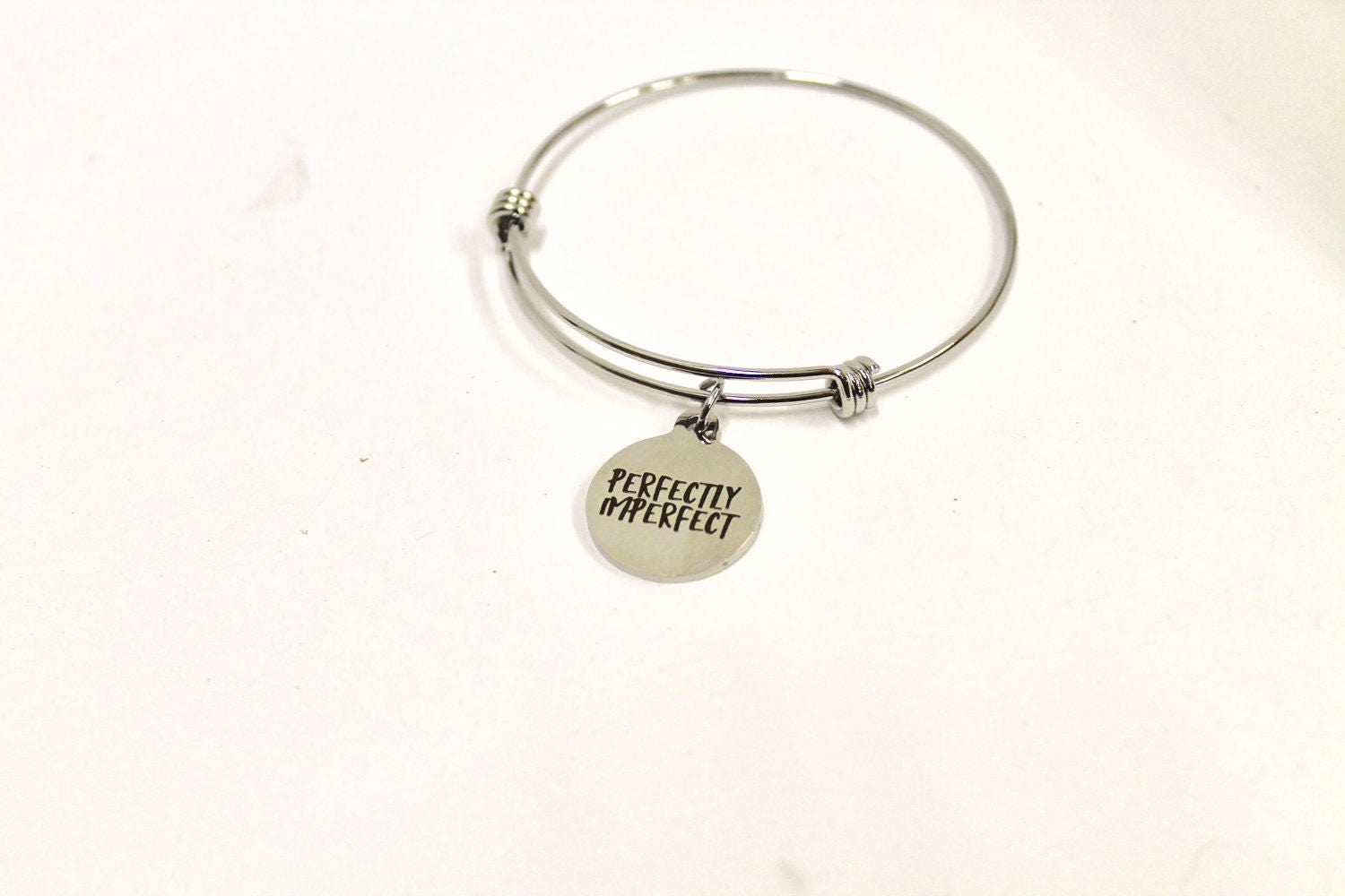 This beautiful bracelet contains a stainless steel engraved charm with "Perfectly Imperfect" on it - because, really, aren't we all? Additional charms can be added via the Add A Charm Listing in my shop. This bracelet is made of stainless steel to withstand regular wear without tarnishing or changing colors.. The bracelet expands to easily fit any hand and wrist size.