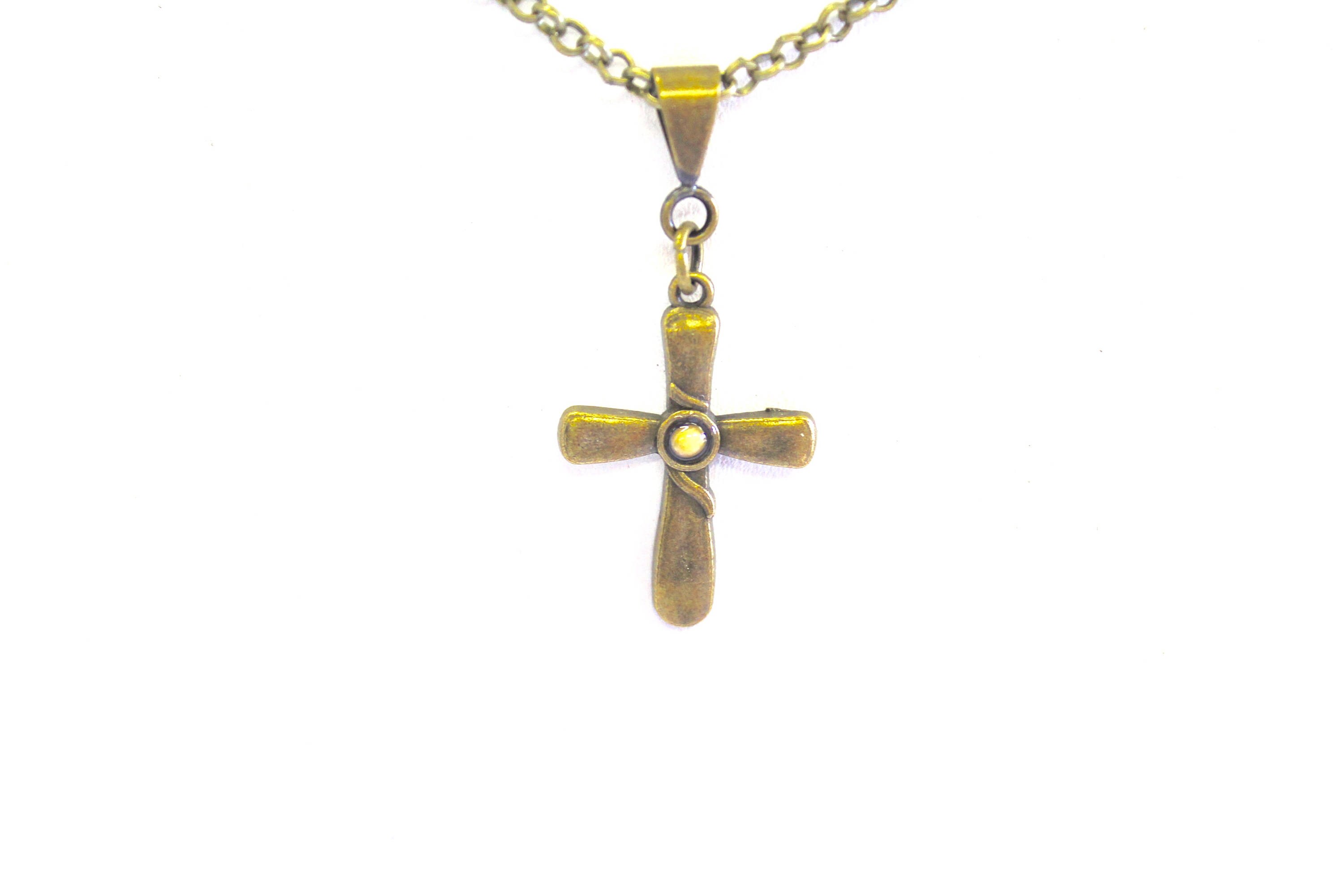 This is a antique brass cross mustard seed pendant necklace to represent the Bible verse of Luke 17:6. The pendant is a beautiful antique brass cross with a single mustard seed to remind us that if we have the faith of a mustard seed, we can make things happen! This pendant is available on your choice of 16, 18, 20, 22, 24, 26, 28 or 30 inch chain. The pendant is also available for individual purchase if you have another chain on which you would like to wear it.