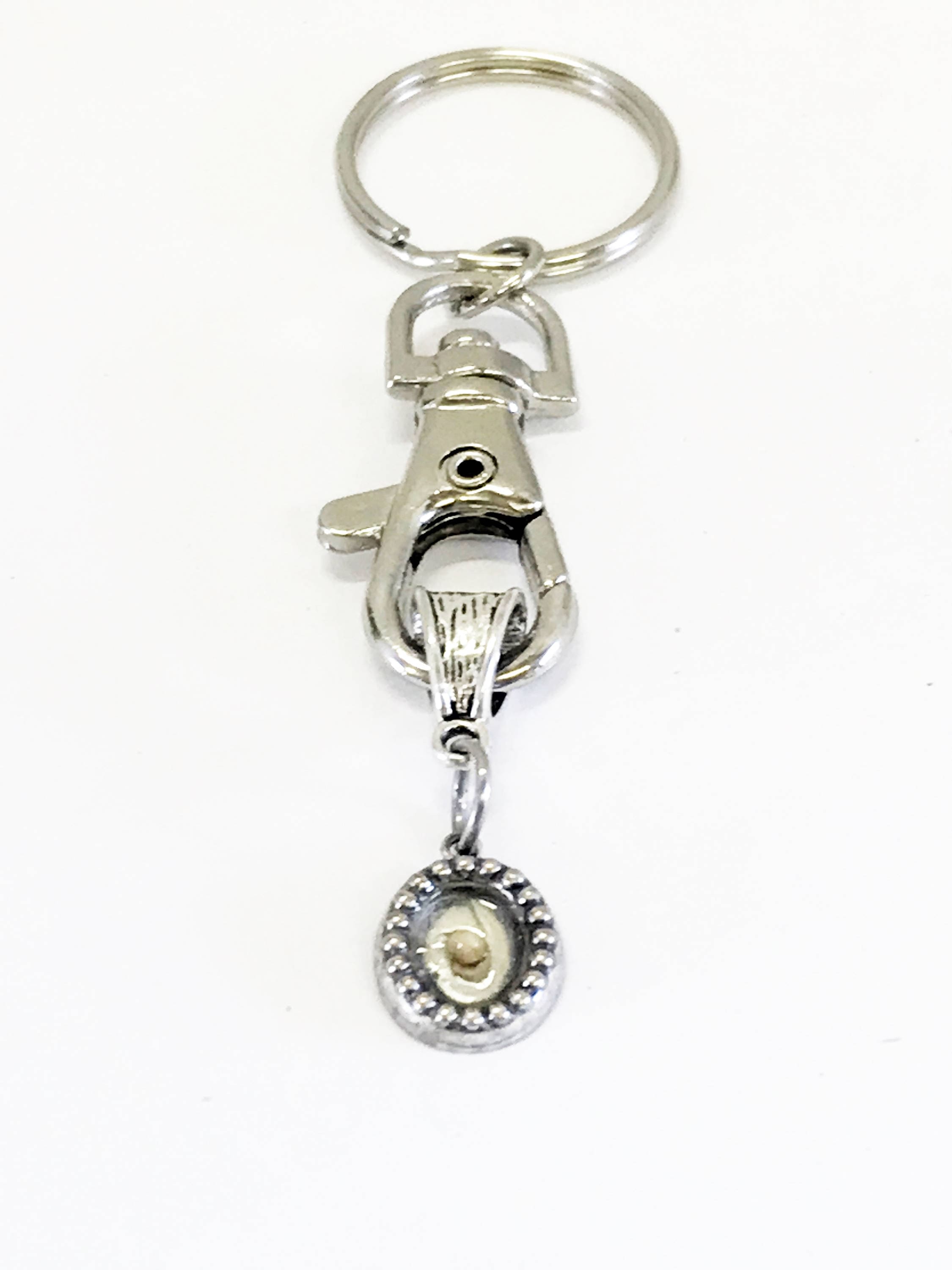 This is a simple oval mustard seed keychain to remind us with the simple faith of a mustard seed, we can move mountains.
