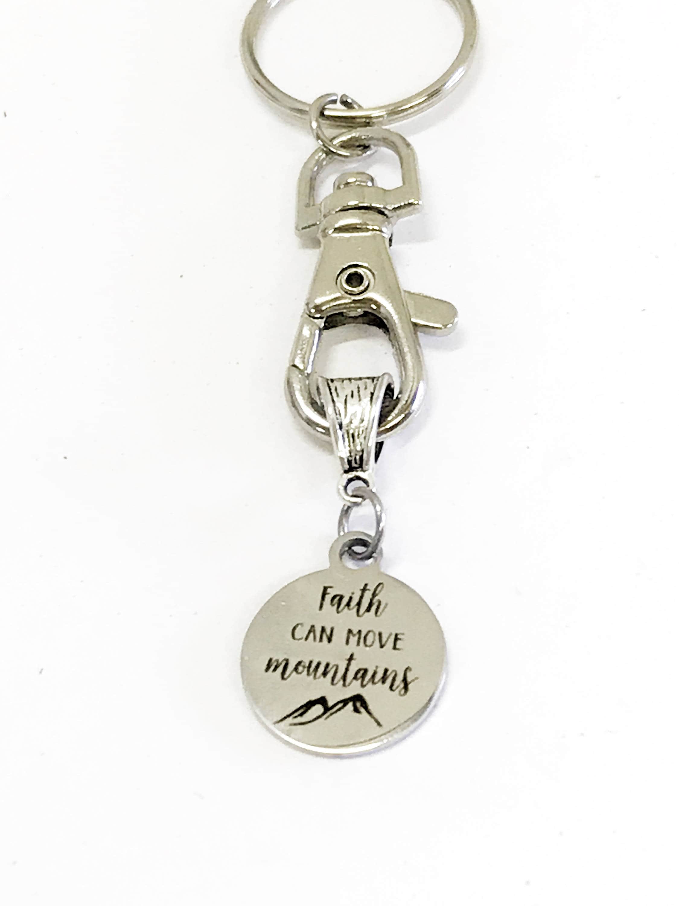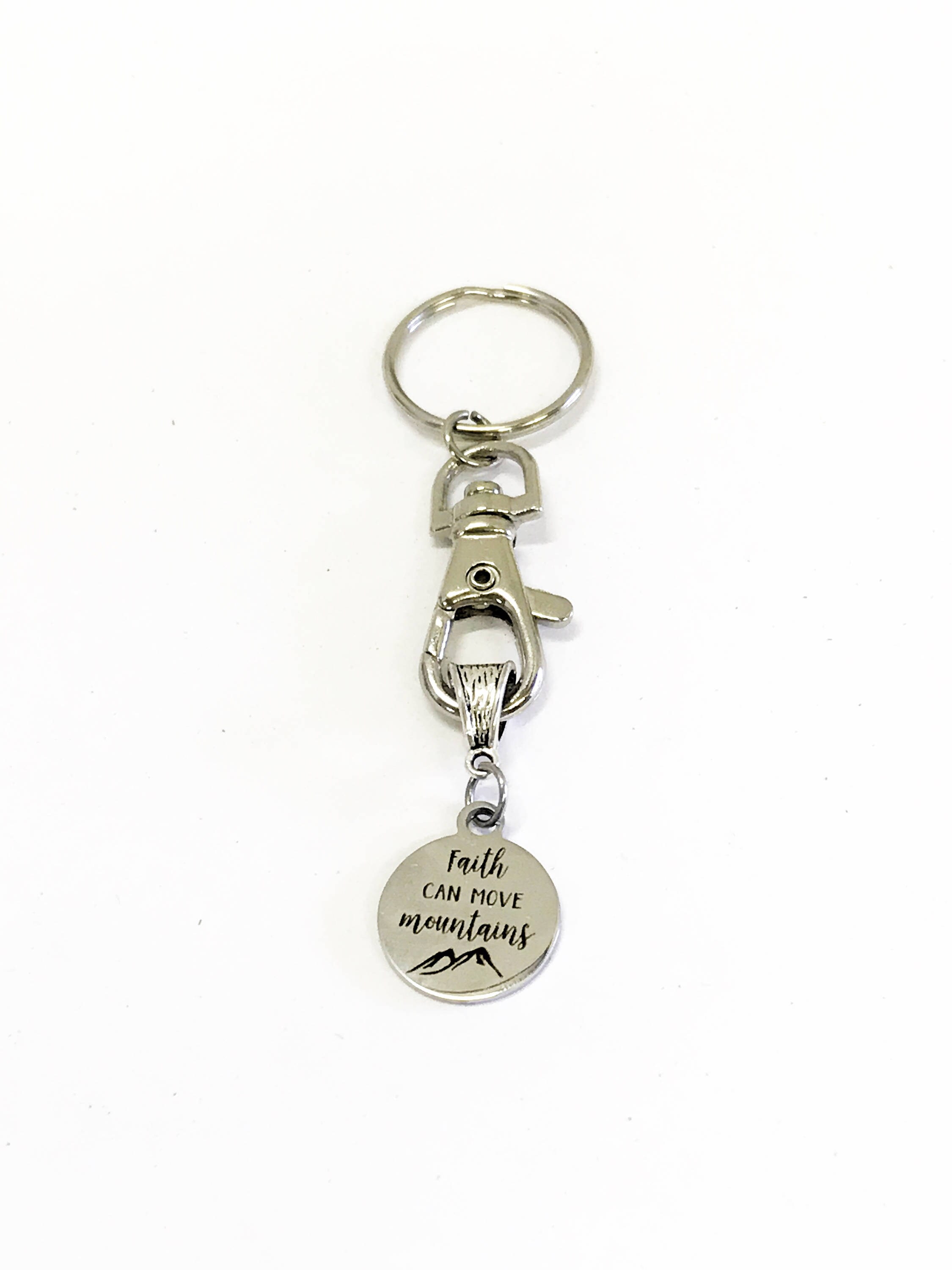 This is a great keychain that has a stainless steel laser engraved charm which says, "Faith can move mountains". This is a great motivational keychain for someone working to reach a goal.