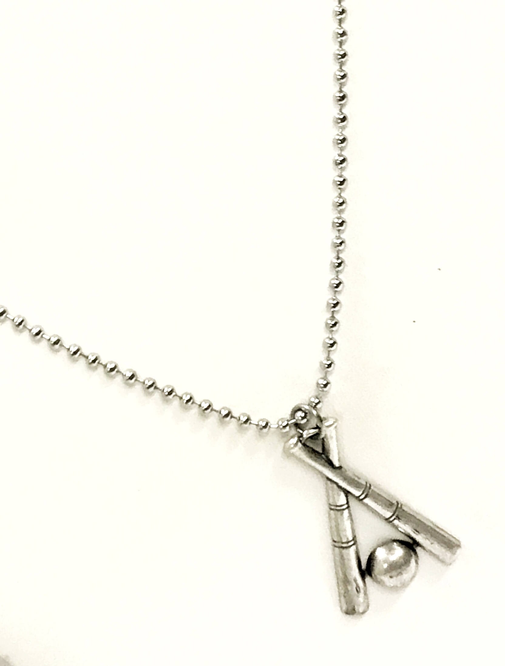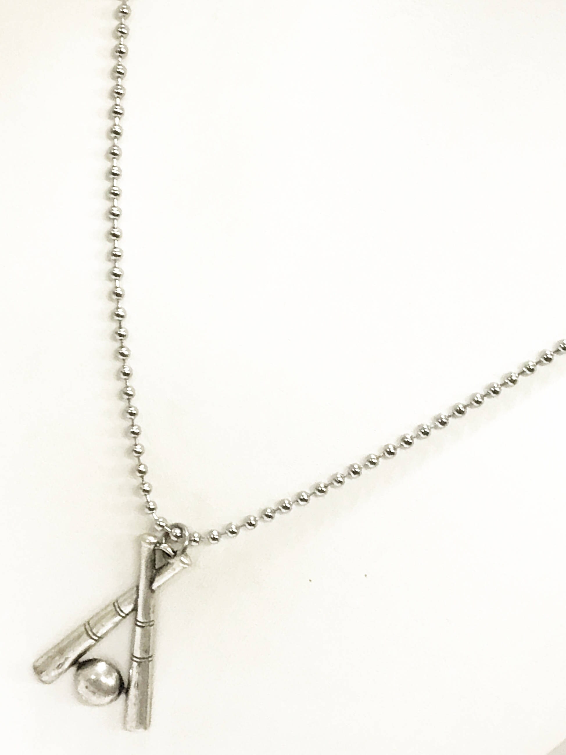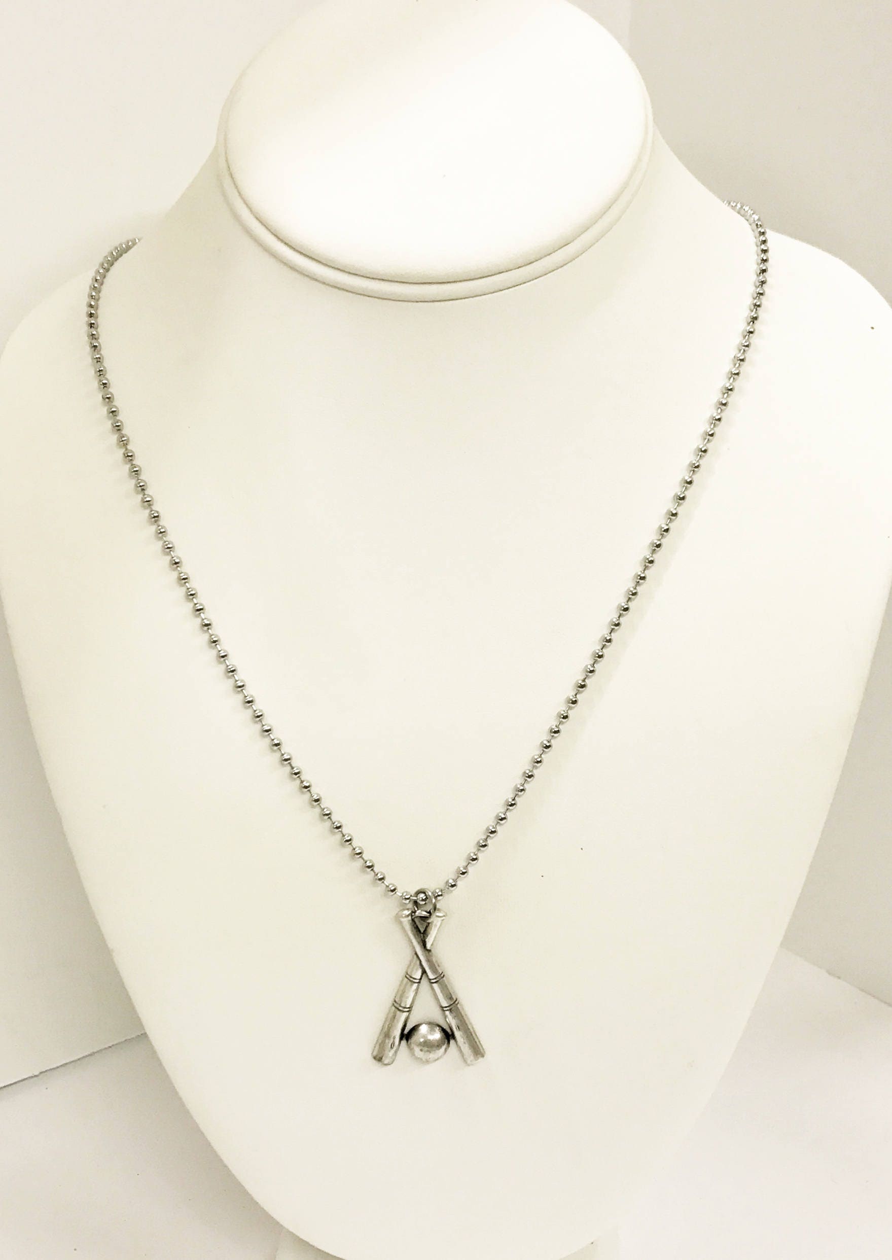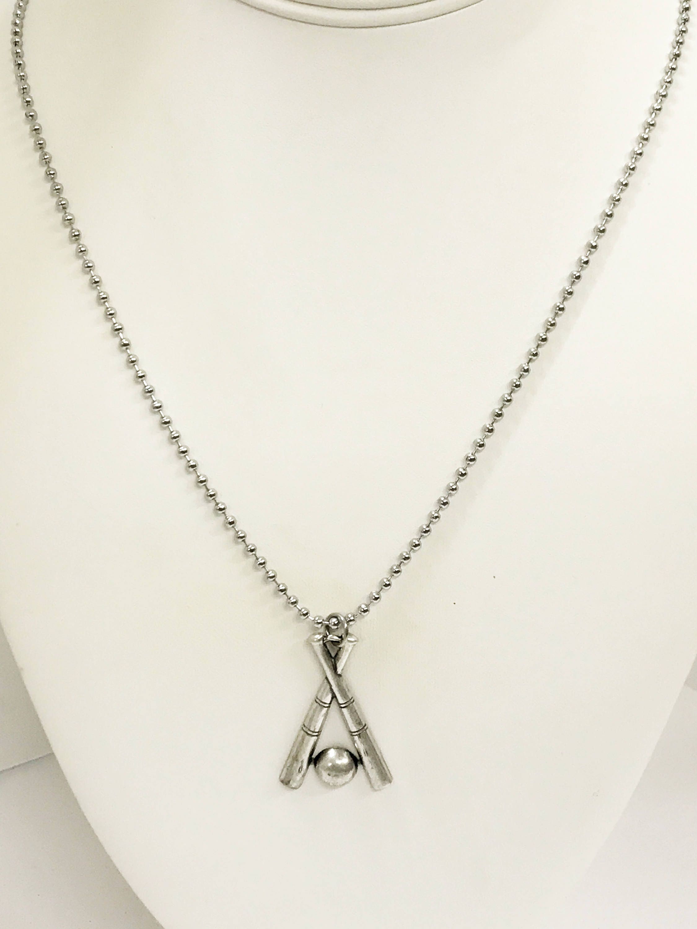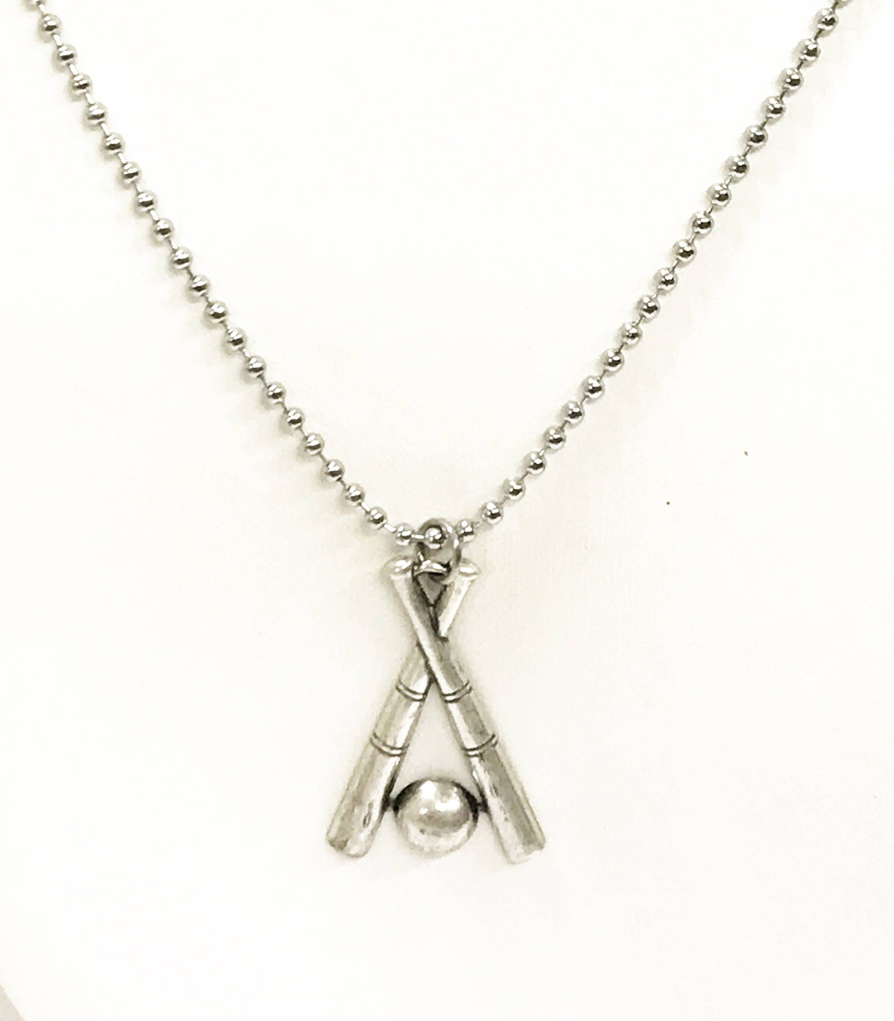 This is a great necklace for the baseball player, baseball dad, or baseball fan in your life. It is a set of crossed baseball bats with a baseball between them. This pendant comes on a 26 inch ball chain. The pendant is also available for individual purchase if you have another chain on which you would like to wear it.