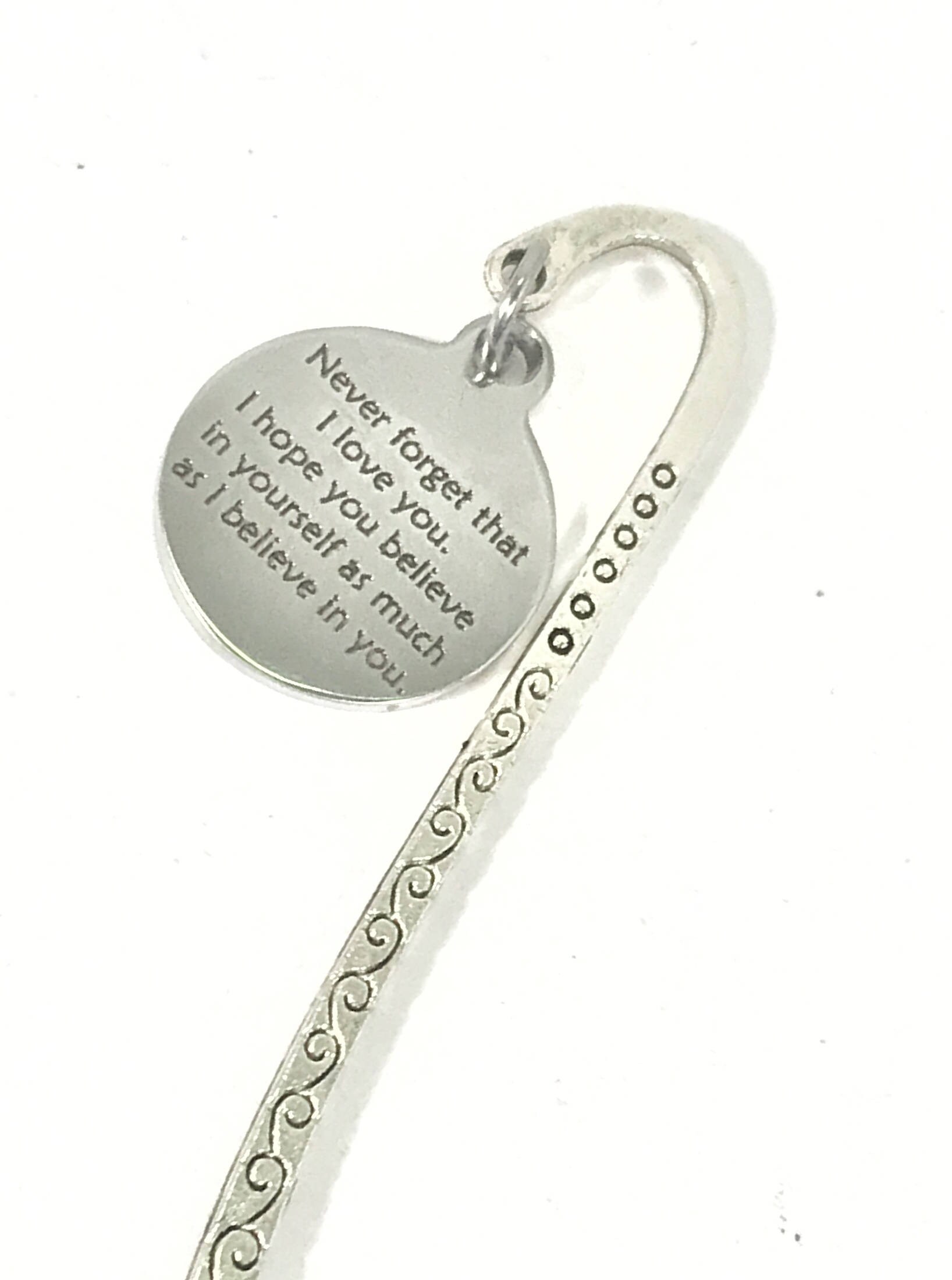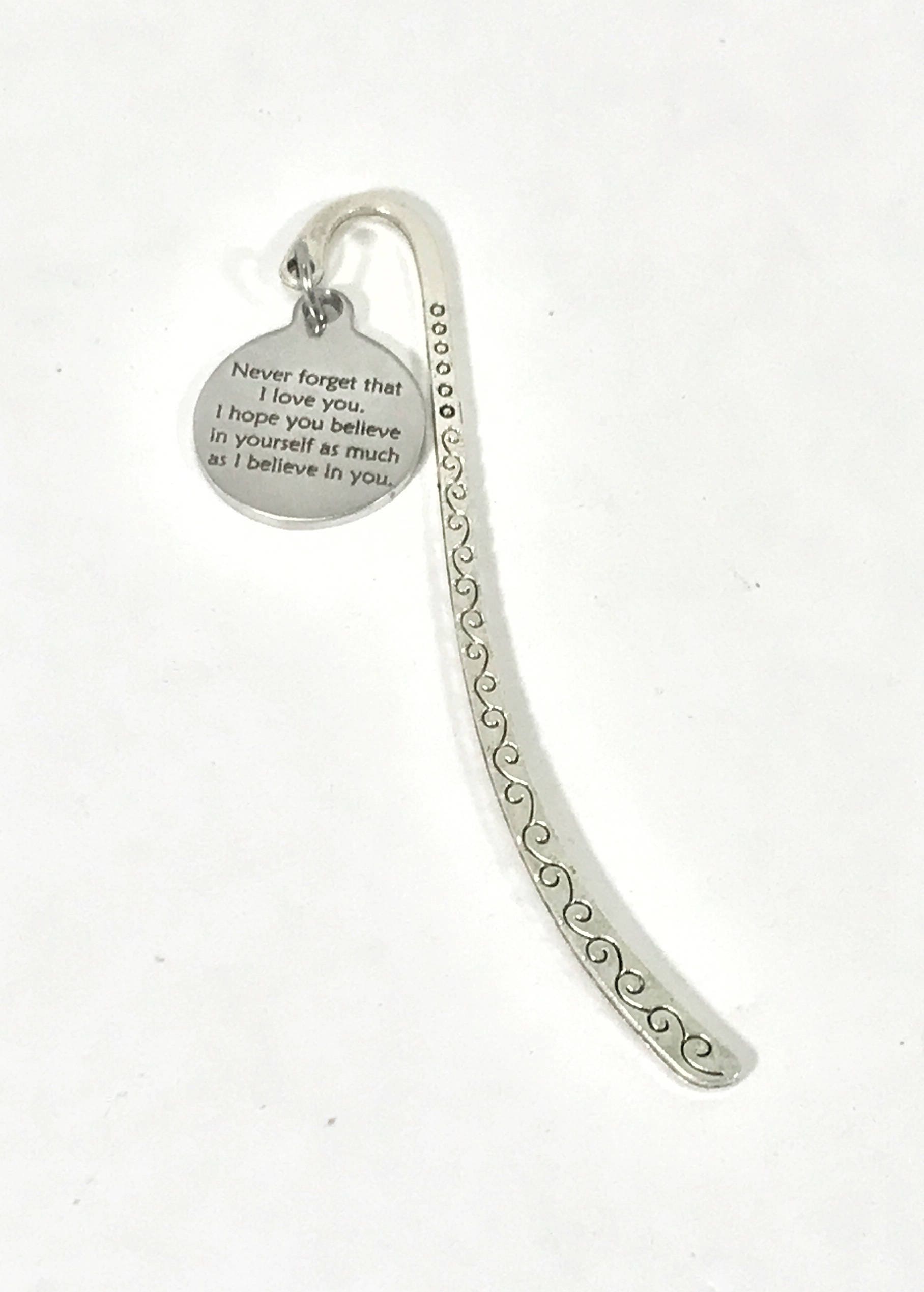 Does your daughter love to read? If so, this is the perfect bookmark for you! It has a stainless steel laser engraved charm on a metal bookmark. The bookmark measures approx. 3.3 Inches in length. The charm has the following on it: