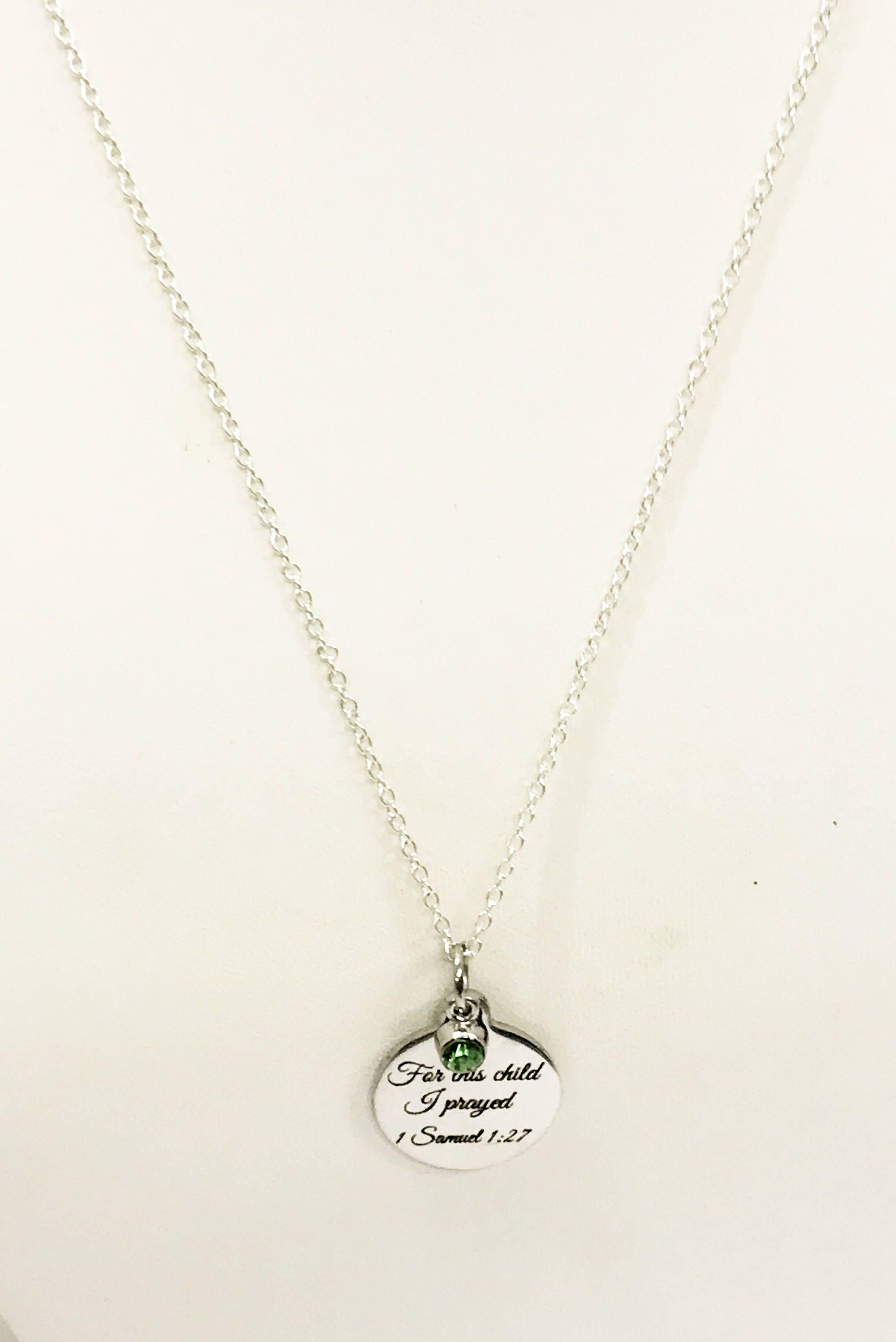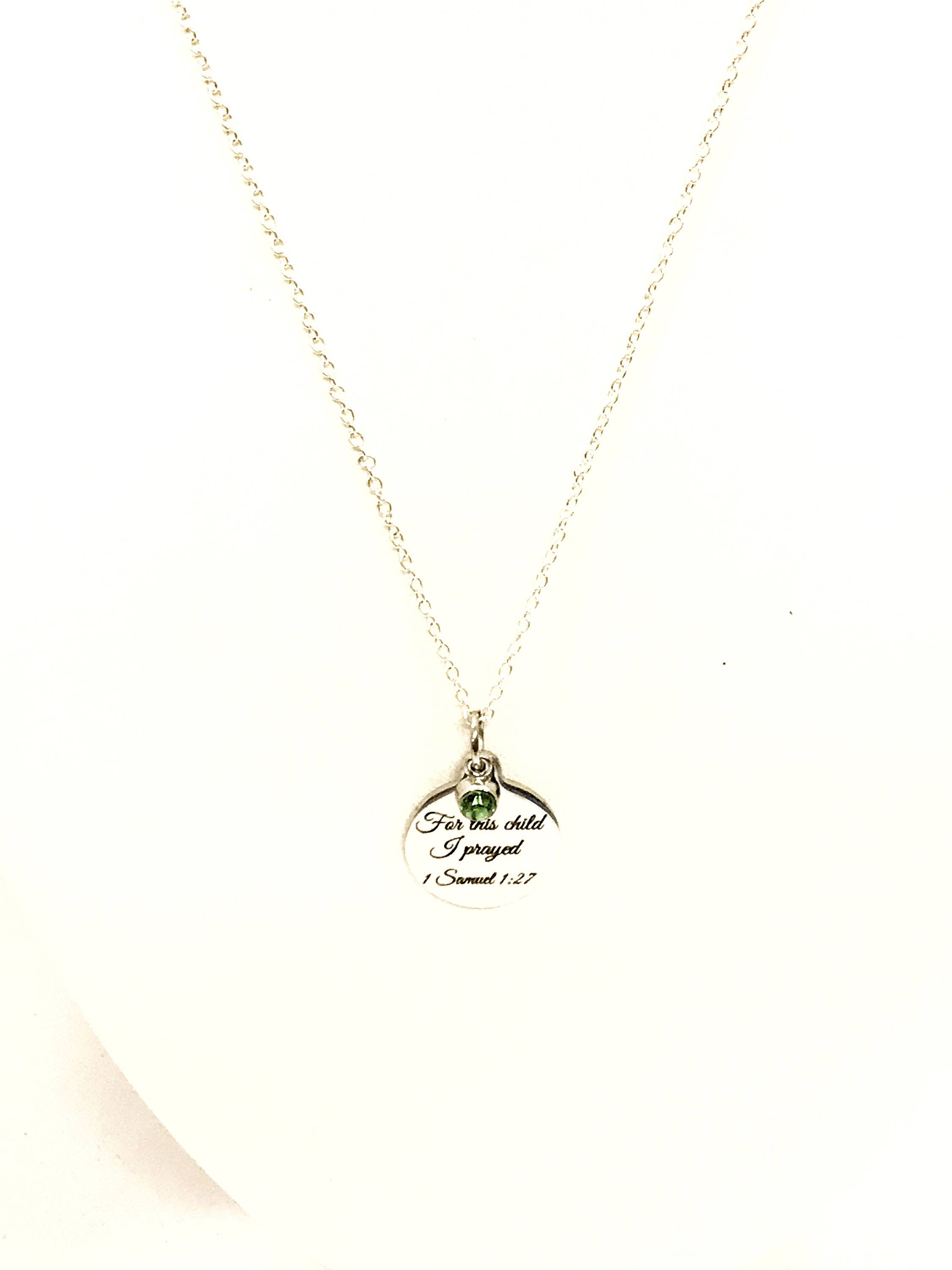 I never thought that I would see the verse on a necklace for my Daughter-In-Law who claimed, 1 Samuel 1:27 for her son, they named him Samuel. I let him give it to her on Valentine's Day. She teared up. All love it! she she