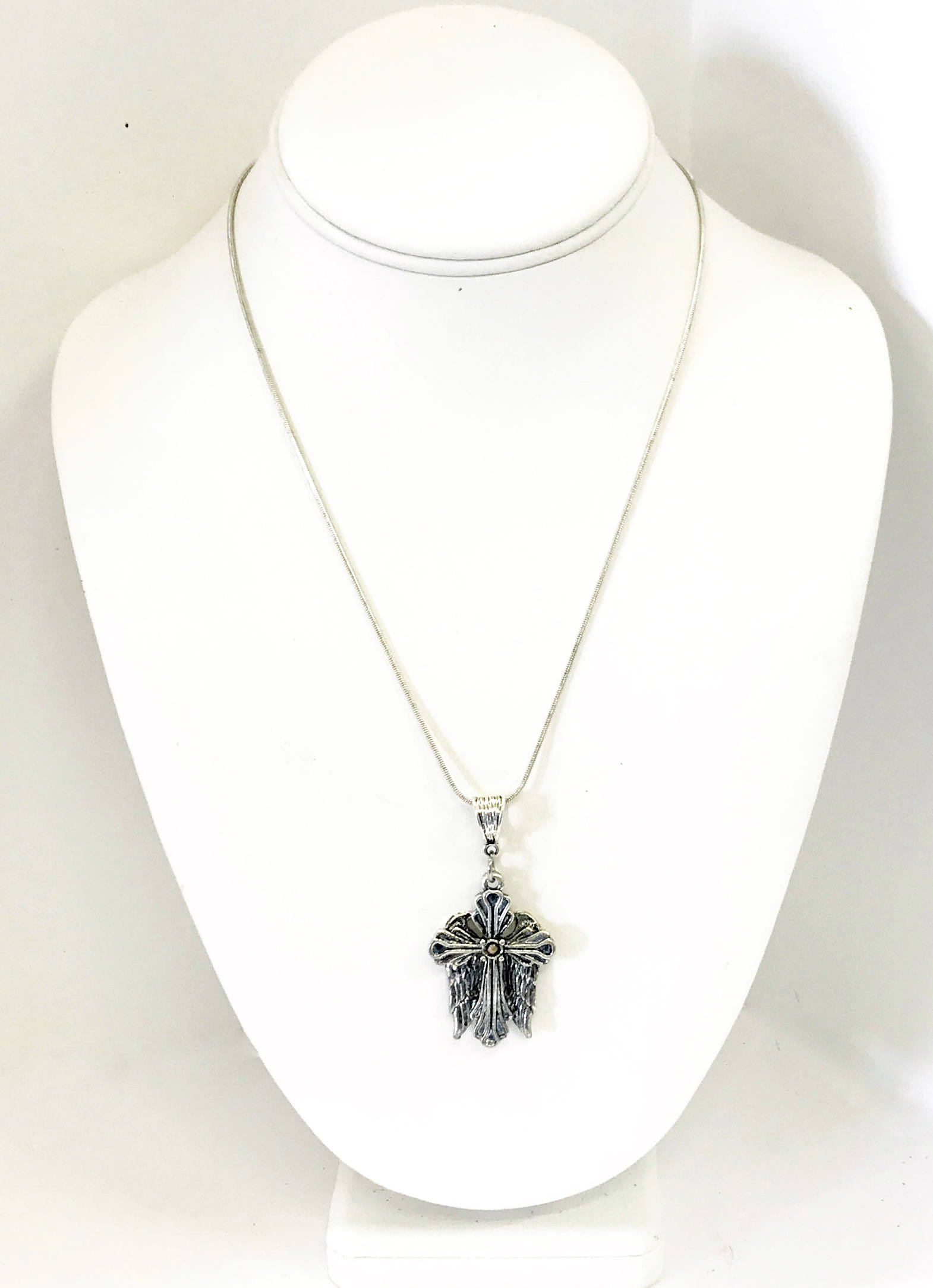 This beautiful necklace has an angel wing cross with a single mustard seed at the center to serve as a reminder that with the faith of a mustard seed, we can move mountains! The cross measures approx. 1 3/4 inch in length and approx. 1 inch wide.