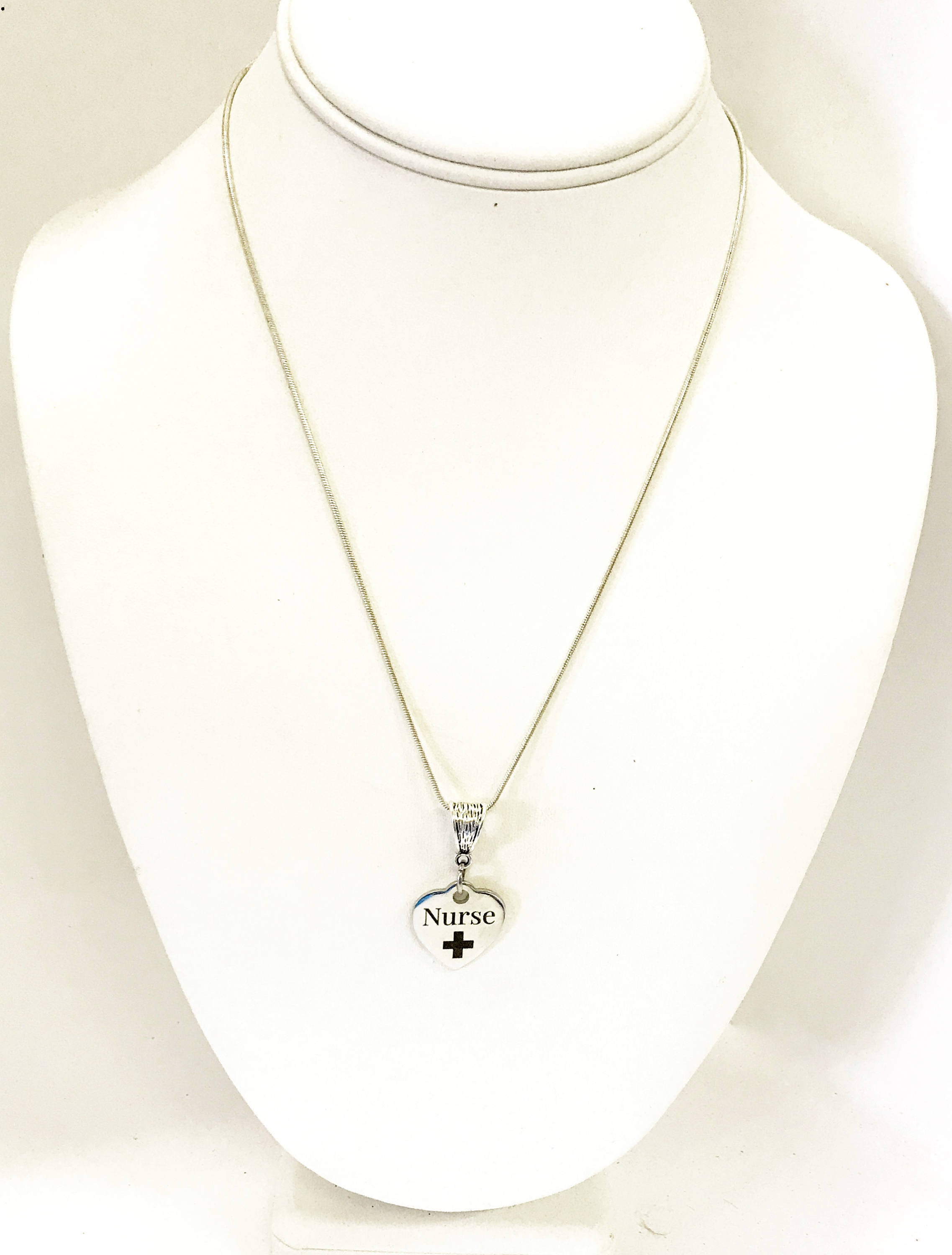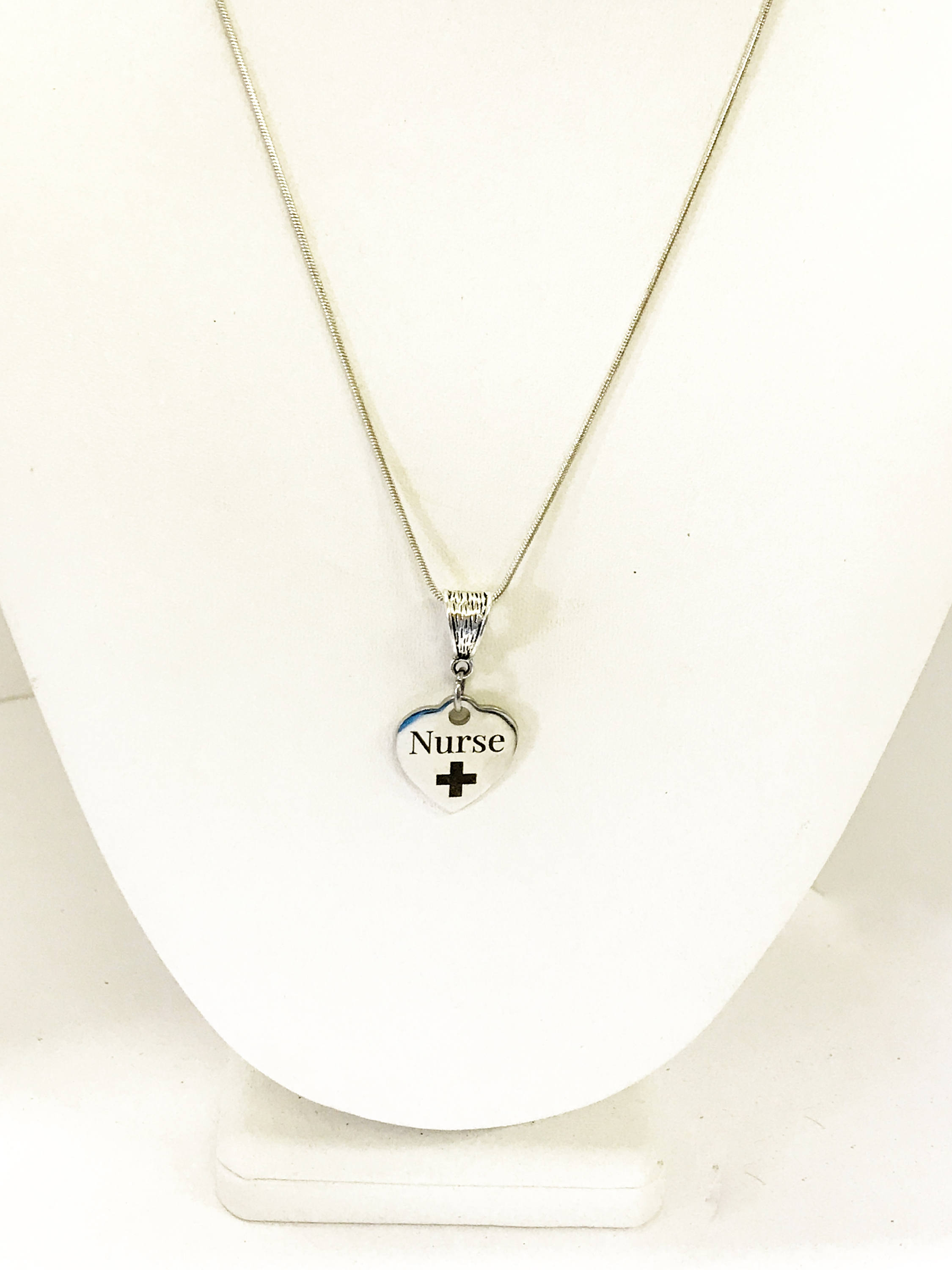 This beautiful necklace has a stainless steel laser engraved heart Nurse charm. It would be a great way to recognize the nurses in your life.