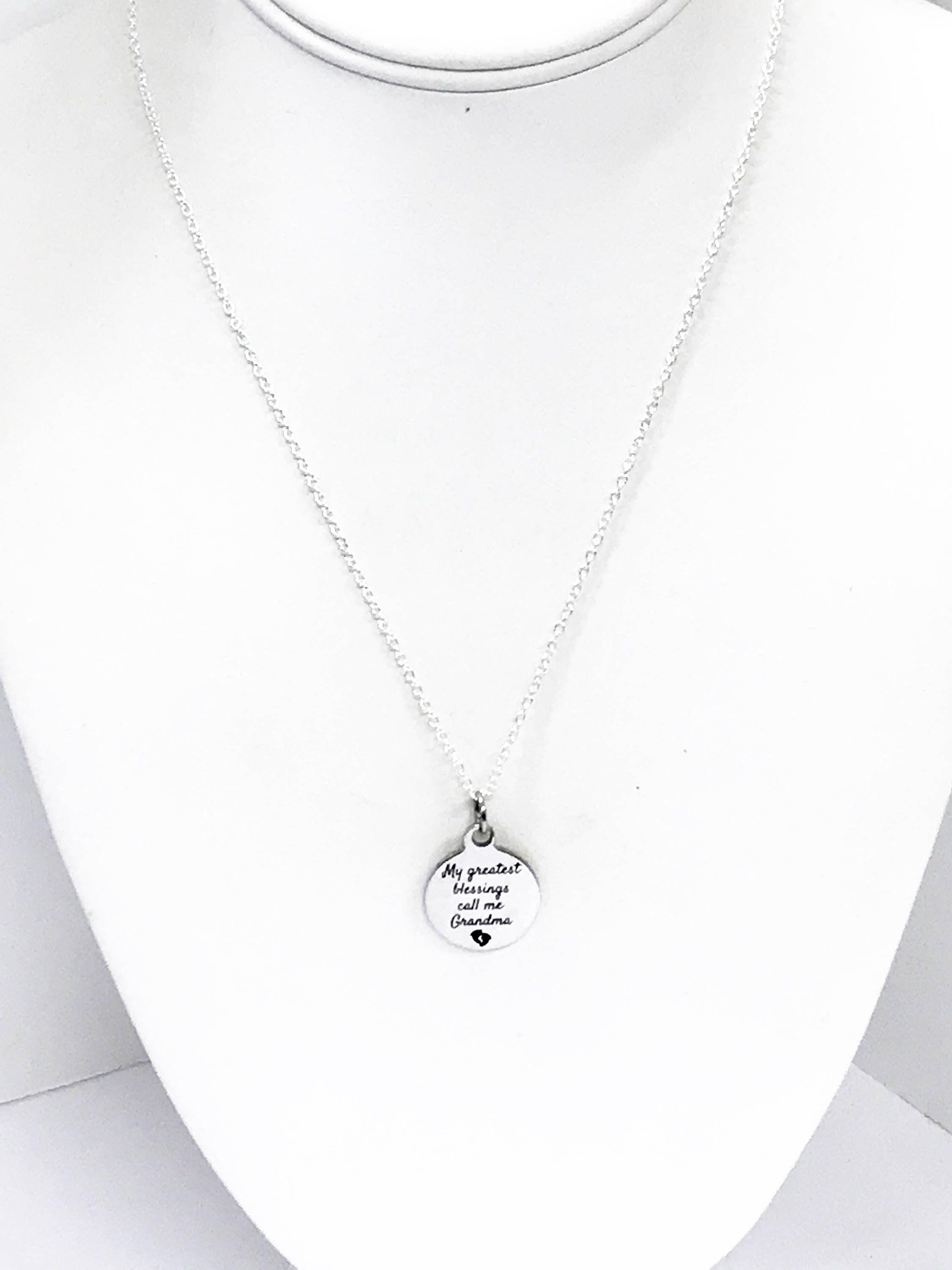 This is a beautiful stainless steel laser engraved charm with "My greatest blessings call me Grandma" on it.