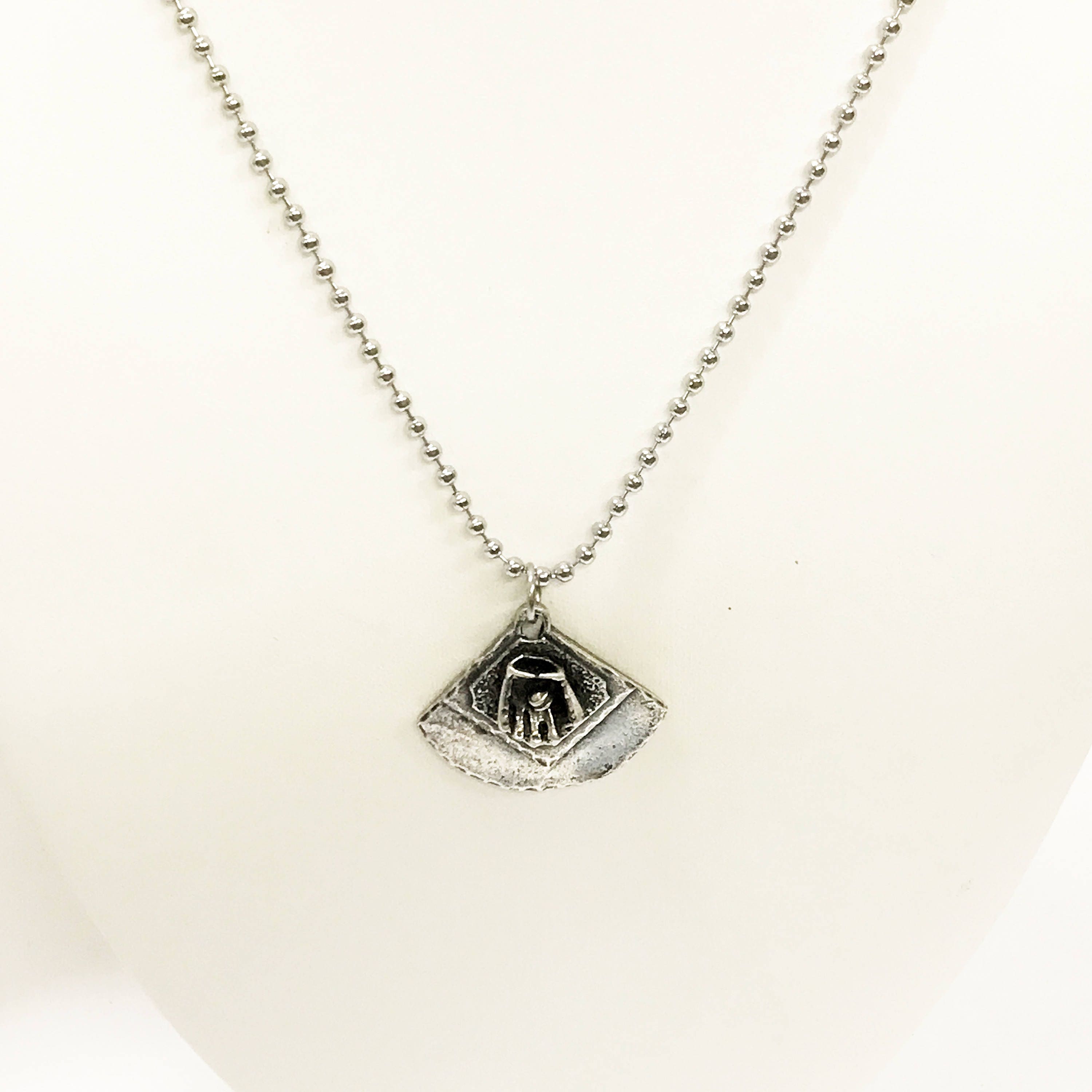 This is a great necklace for the baseball or softball player, coach, or fan in your life. It is a baseball or softball field, diamond, glove and ball This pendant comes on a 23 inch ball chain. The pendant is also available for individual purchase if you have another chain on which you would like to wear it.