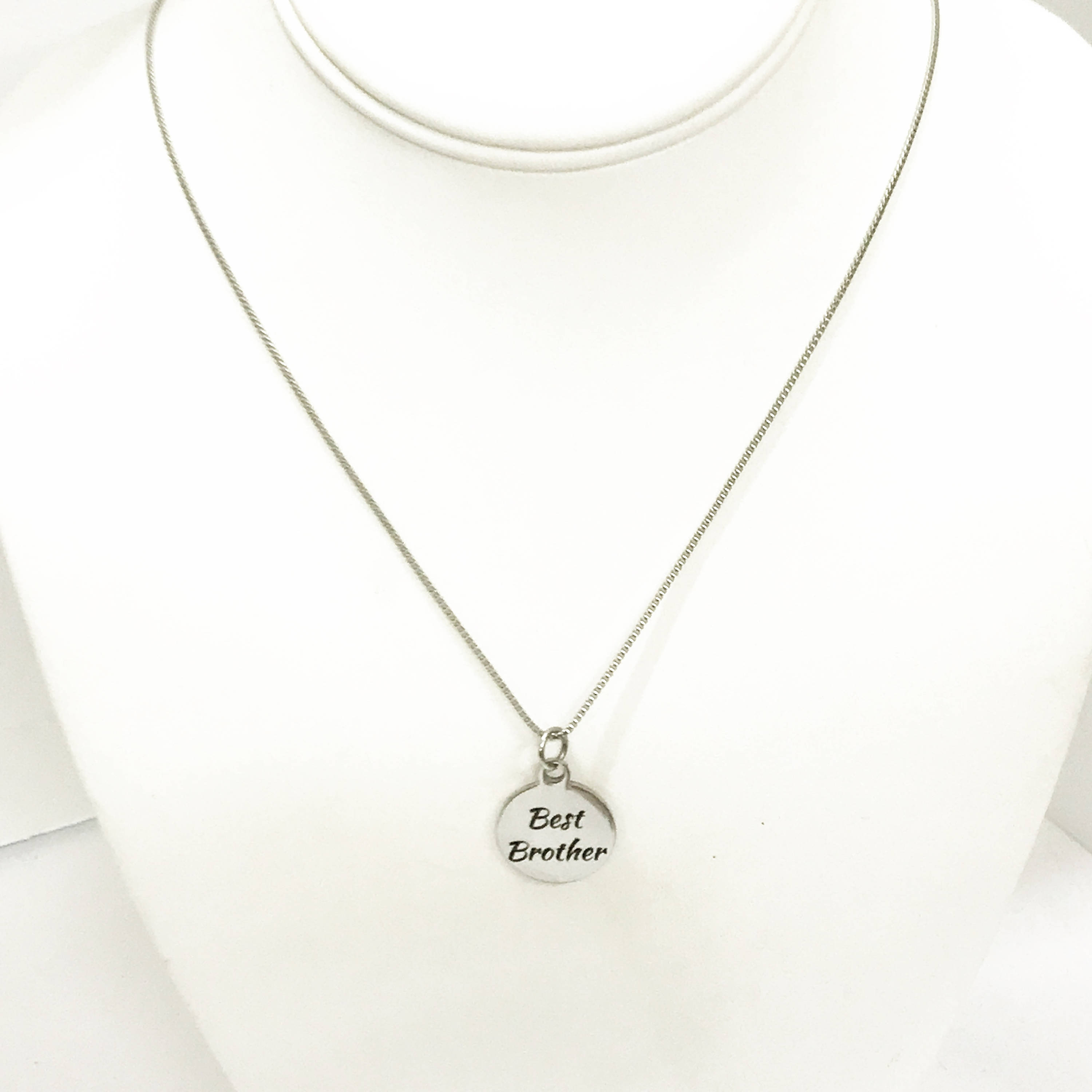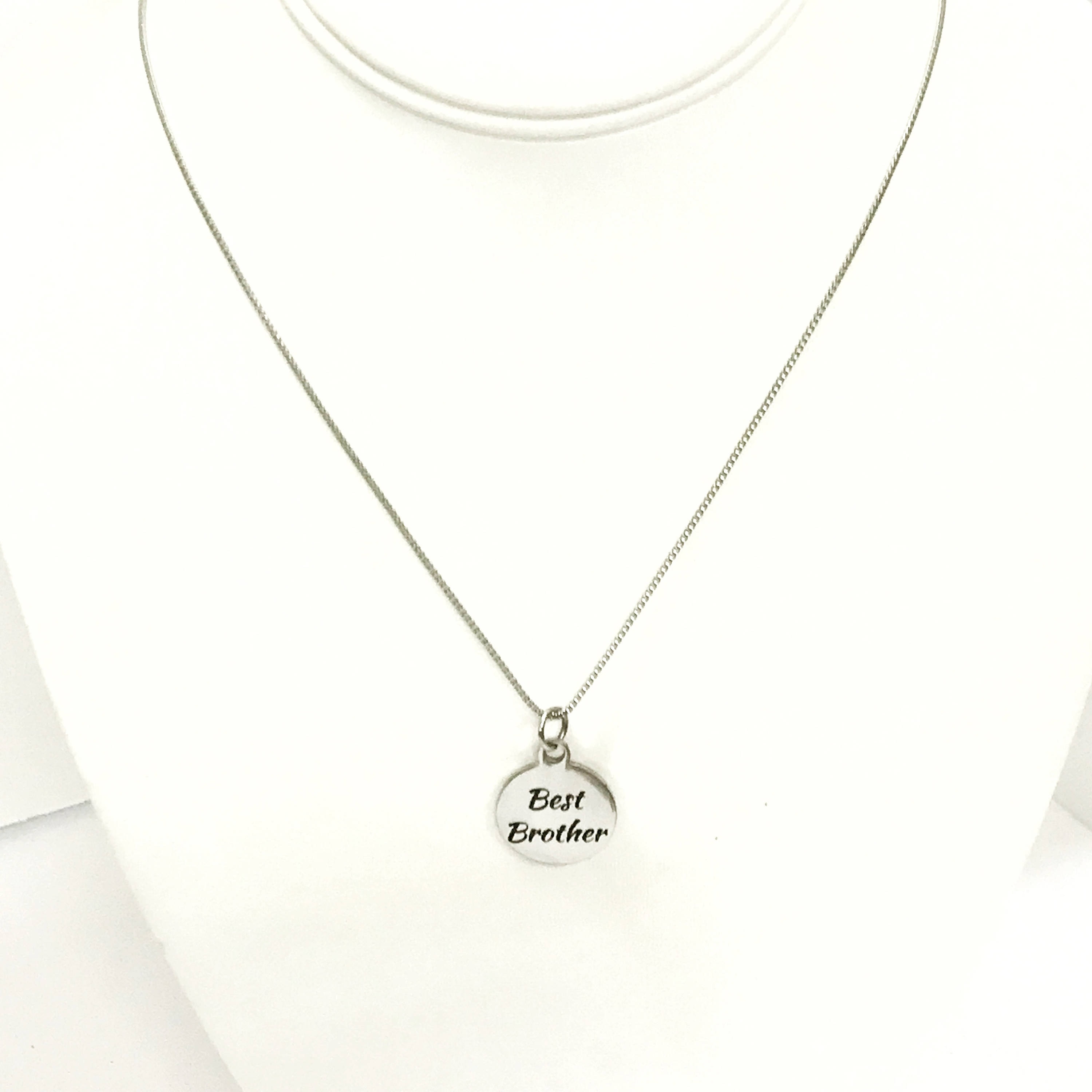 This is a great necklace for the "Best Brother" you know. The pendant is a stainless steel laser engraved charm and comes on a 20 inch stainless steel box chain. The pendant is also available for individual purchase if you have another chain on which you would like to wear it.