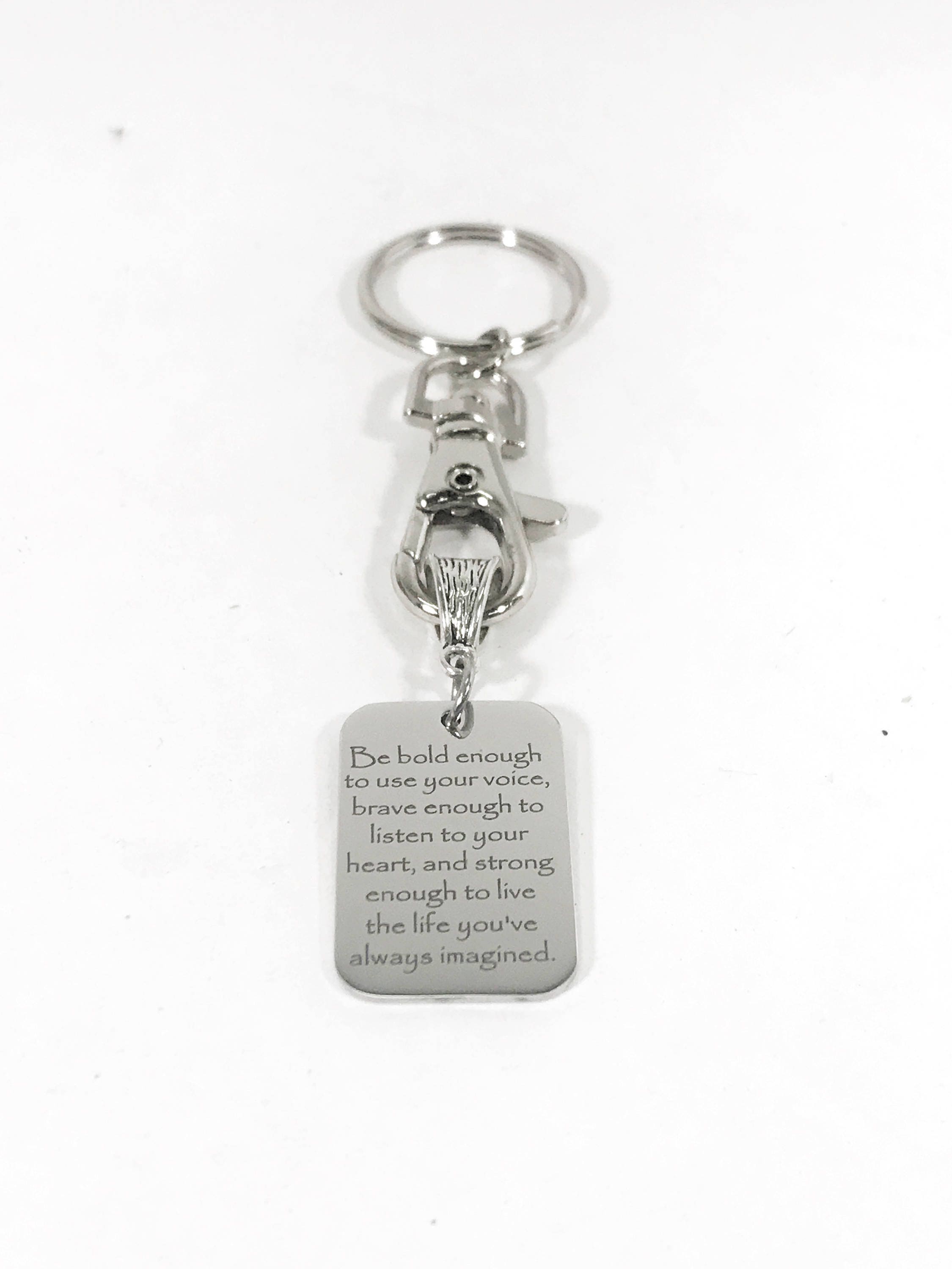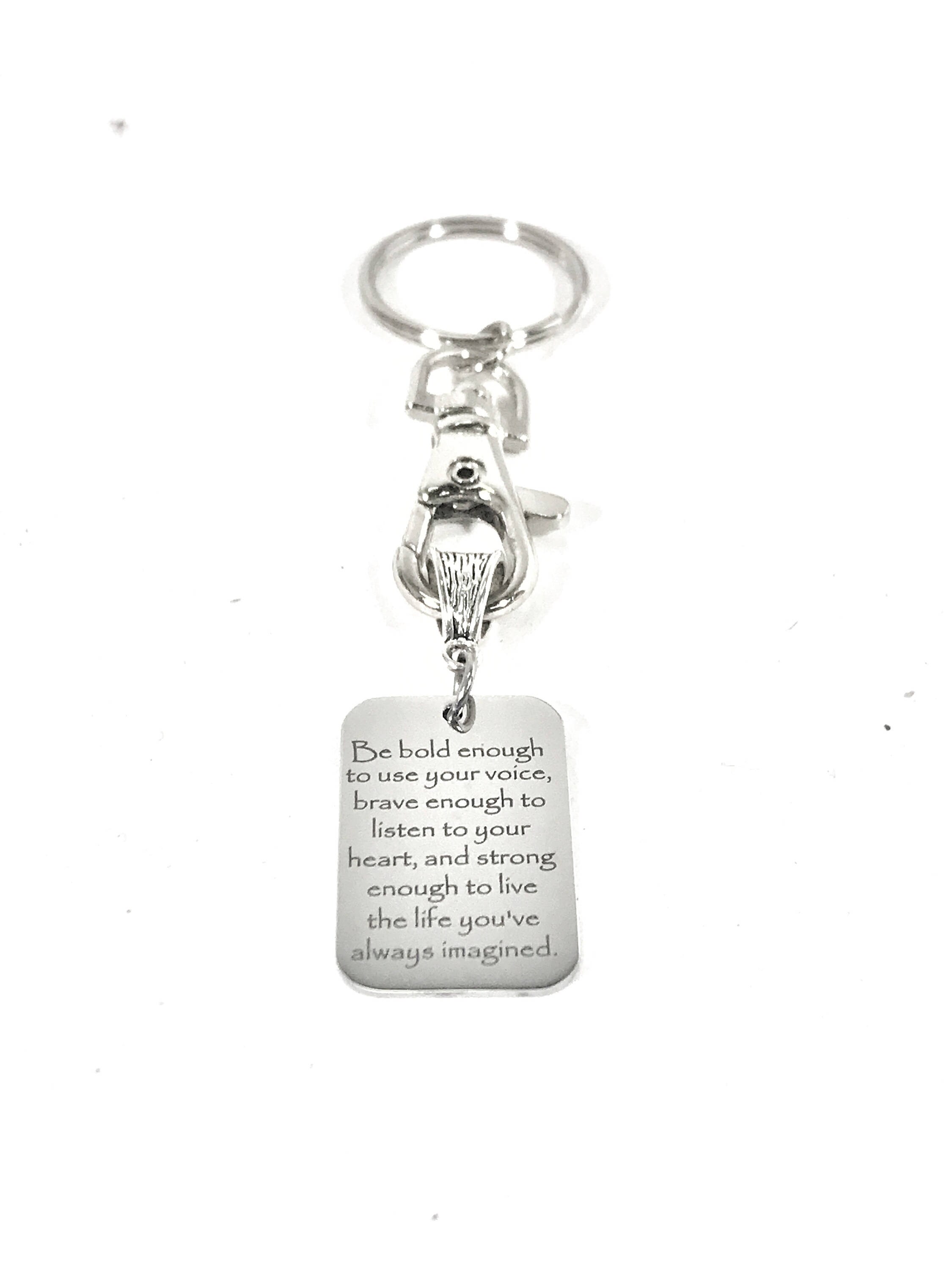 This is a beautiful keychain to serve as an encouragement! It has a stainless steel laser engraved charm with the following on it: