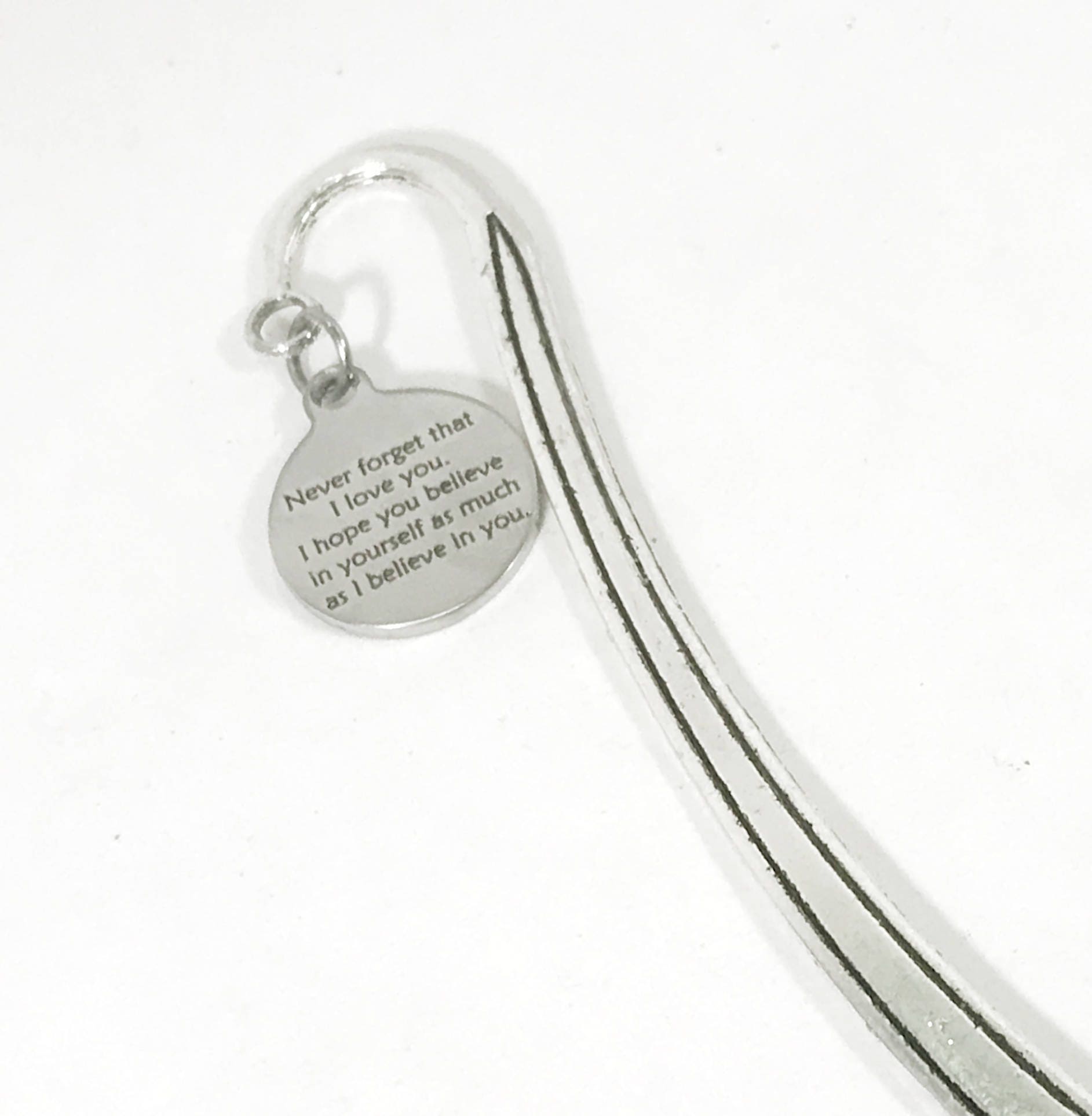 This is a great reader gift! It is a metal bookmark that has a stainless steel laser engraved charm that has the following on it: