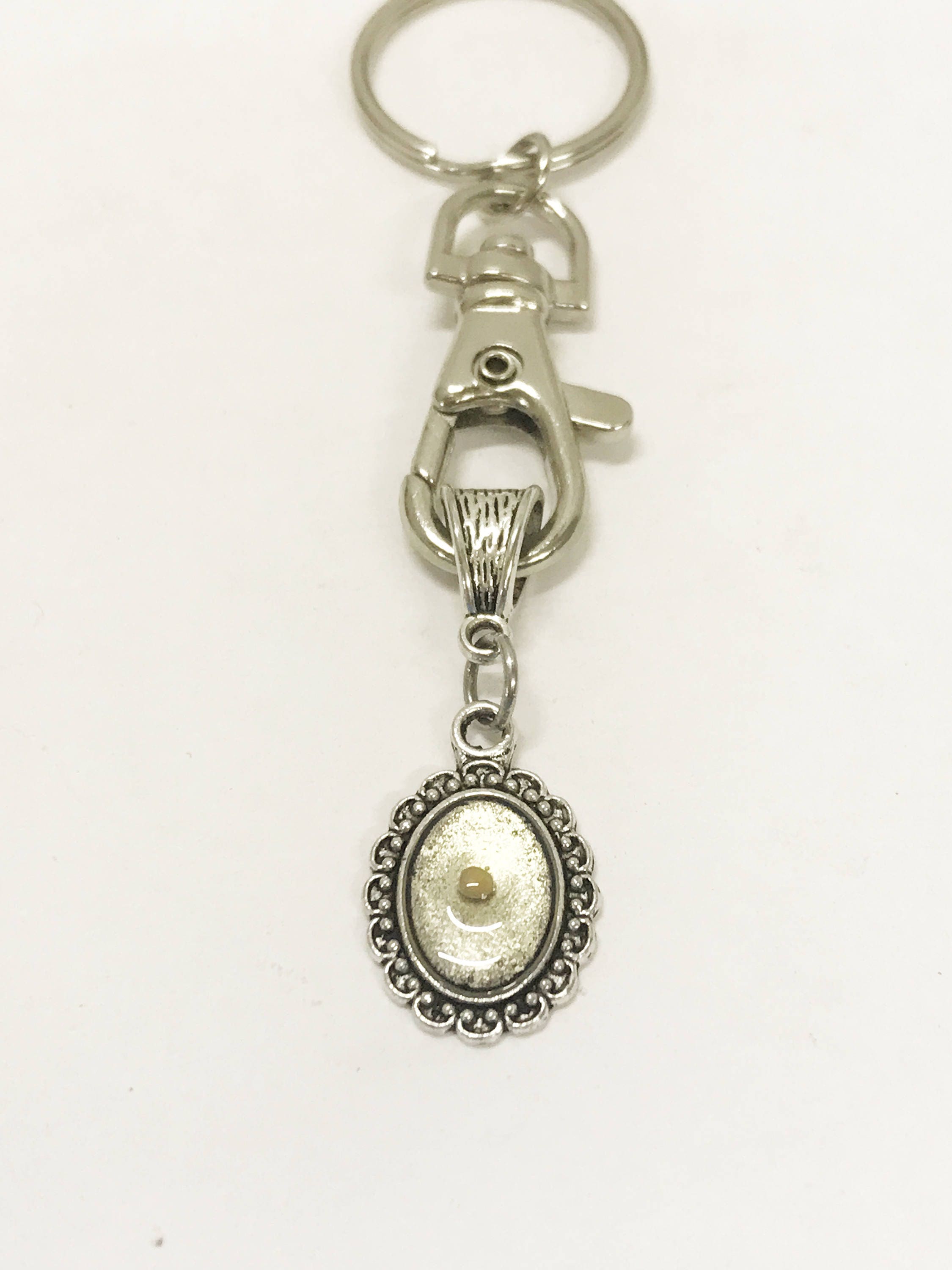 This is a simple oval mustard seed keychain to remind us with the simple faith of a mustard seed, we can move mountains.