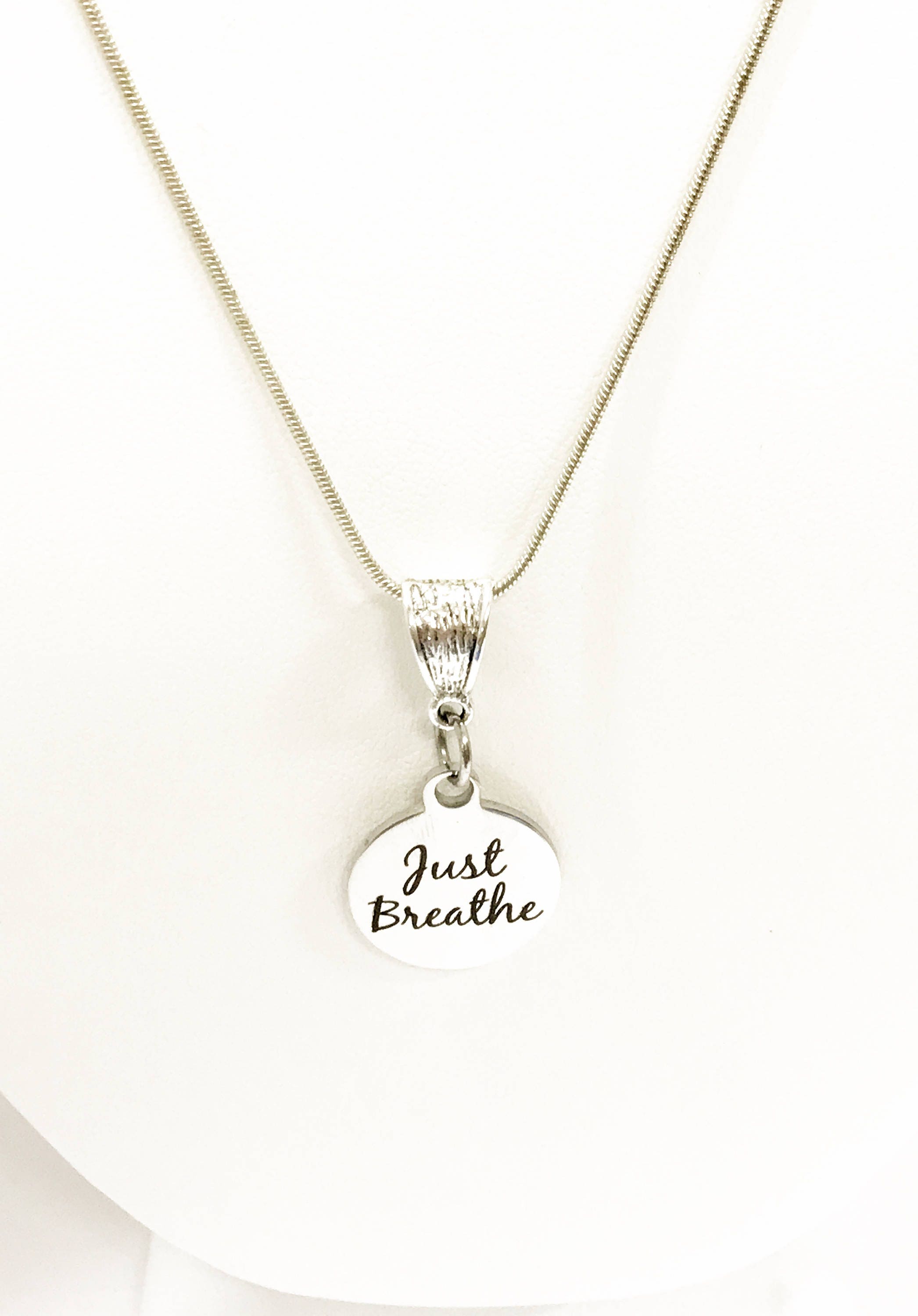 We need to just breathe, believe in ourselves and be who we are. This "Just Breathe" silver necklace serves as the reminder to do just that! .