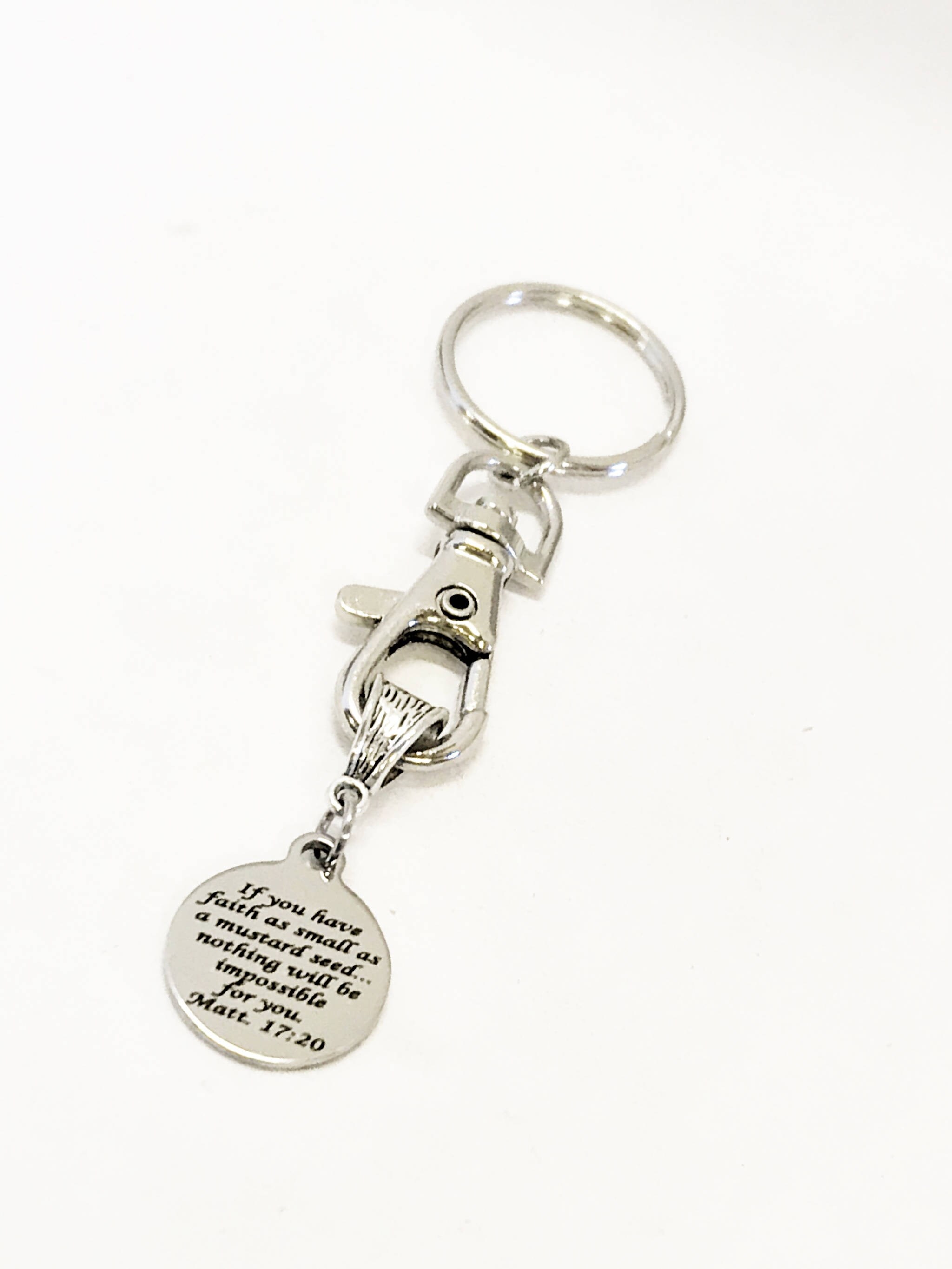 This would make a great Christian faith gift. It has a stainless steel laser engraved charm with the Bible verse of Matthew 17:20 on it.