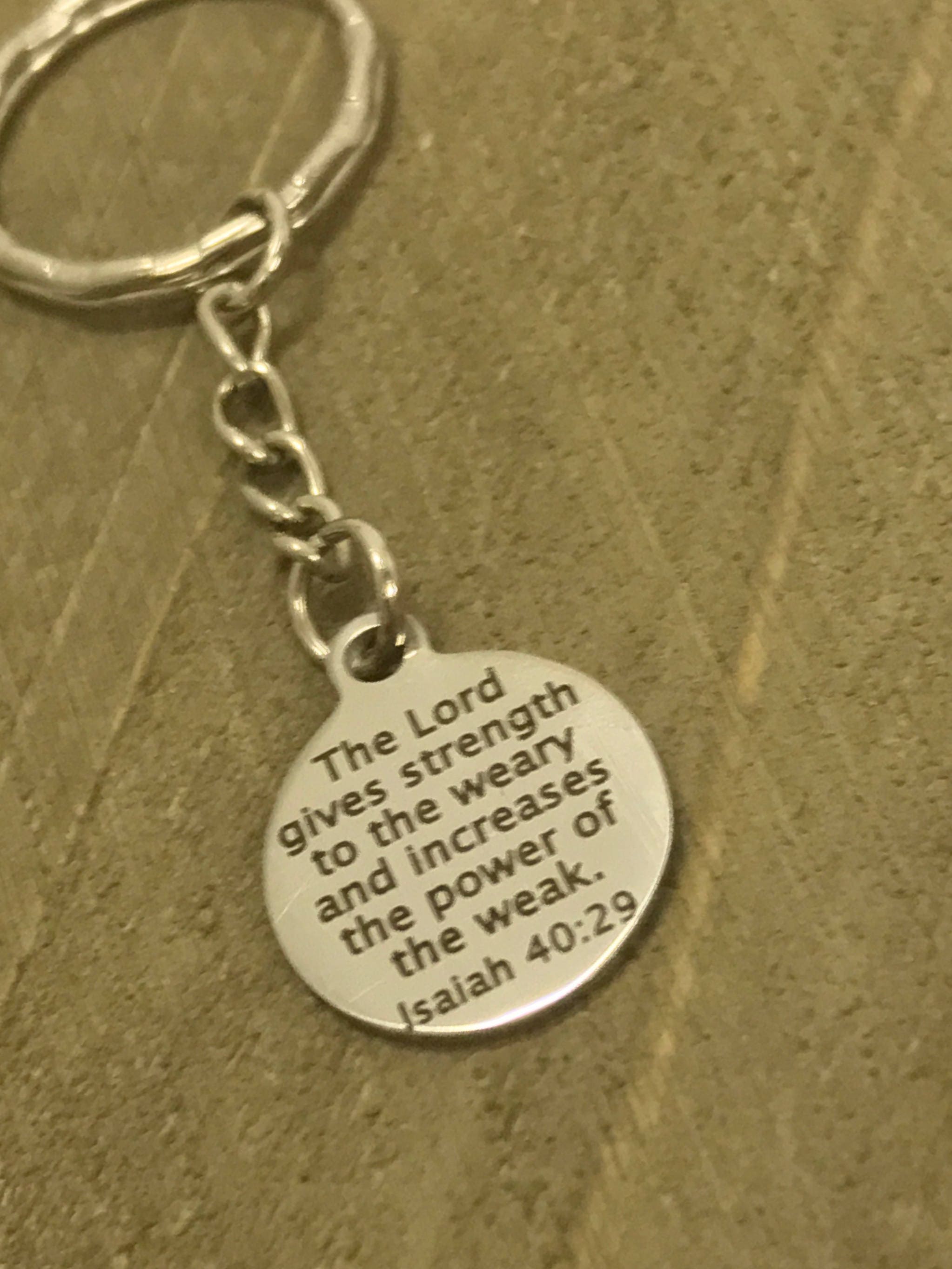 This is a great keychain gift to remind someone that you love that the Lord gives strength and power. It has a charm with the Bible verse of Isaiah 40:29 on it.