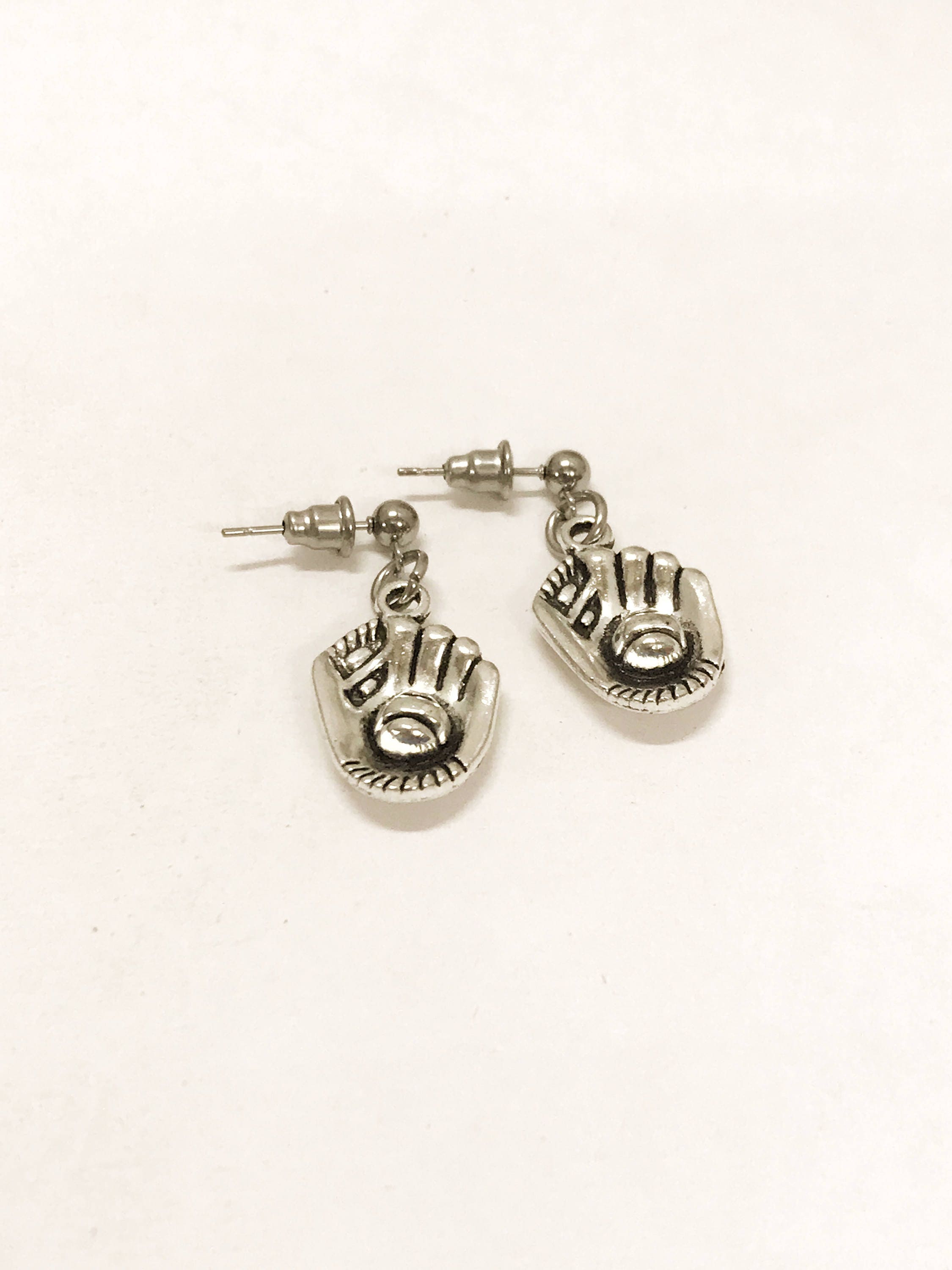 This is such a great set of baseball earrings. They are silver tone baseball glove and ball charms on stainless steel posts. These would make a great gift for the baseball fan in your life!