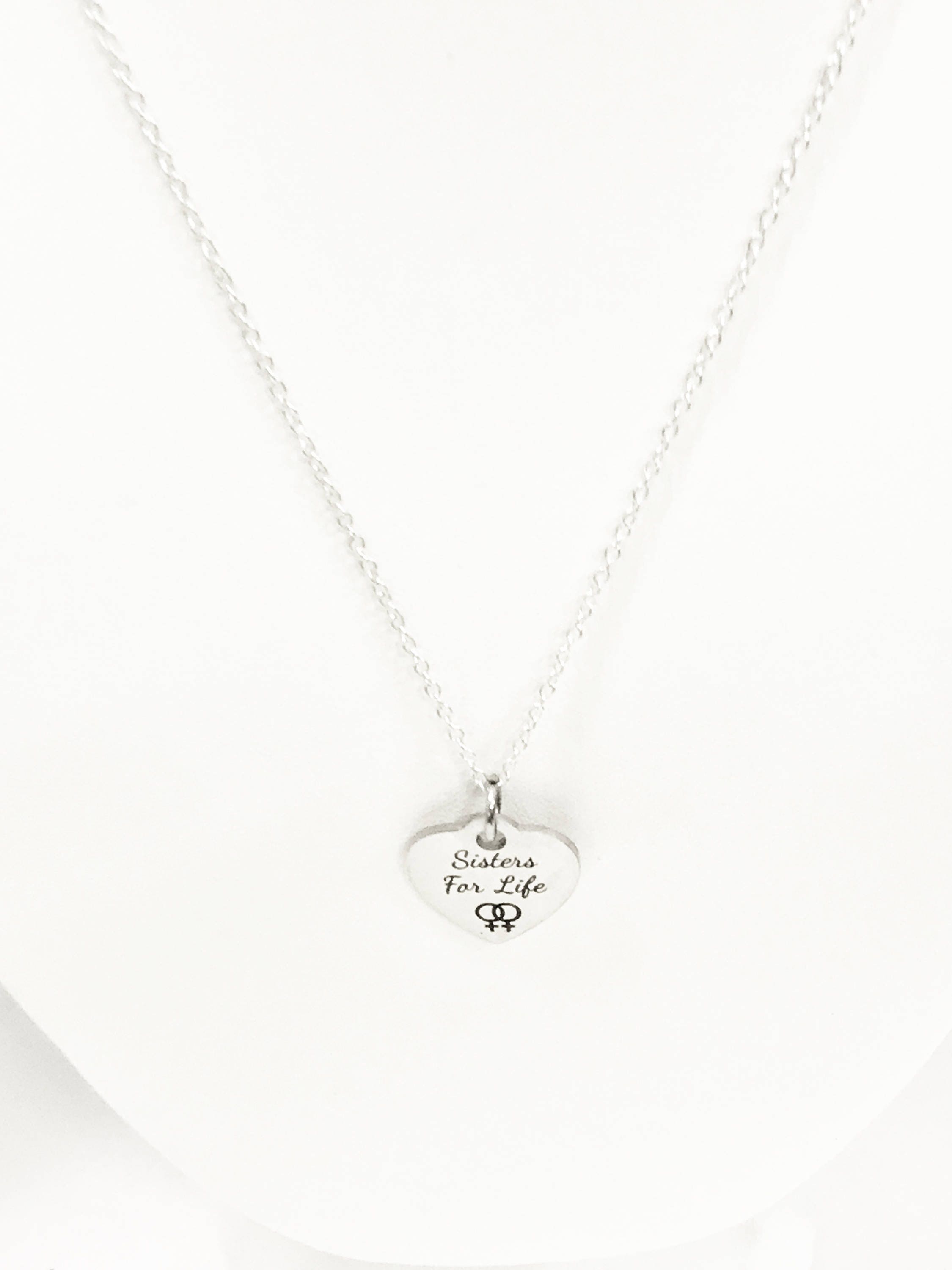 This is a beautiful stainless steel laser engraved pendant with "Sisters For Life" on it. This pendant is available on your choice of 16, 18, 20, 22, 24, 26, 28 or 30 inch chain. The pendant is also available for individual purchase if you have another chain on which you would like to wear it.