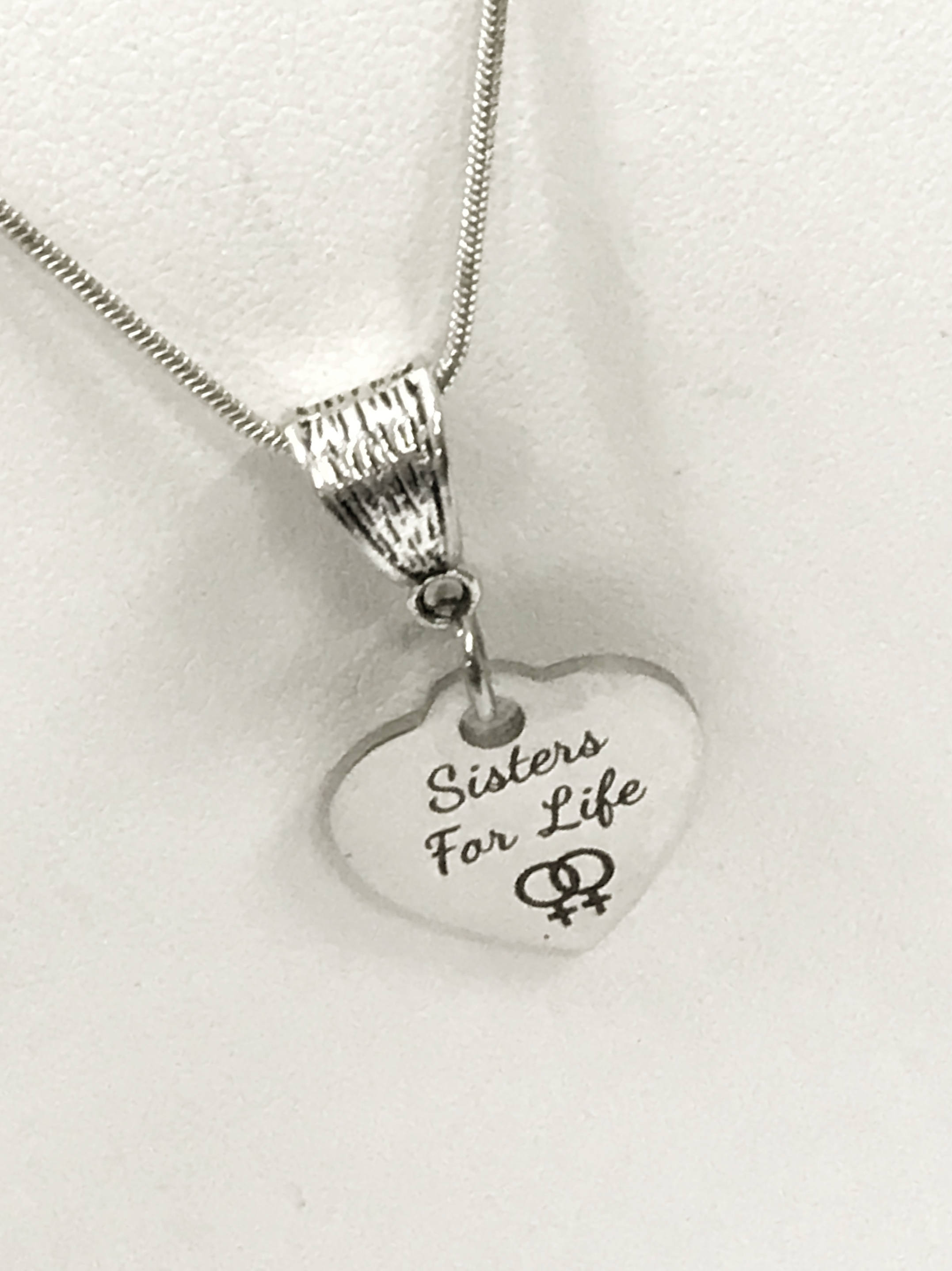 This is a nice gift for your sister, whether by blood or in heart . It has a stainless steel laser engraved charm with "Sister for Life" on it.