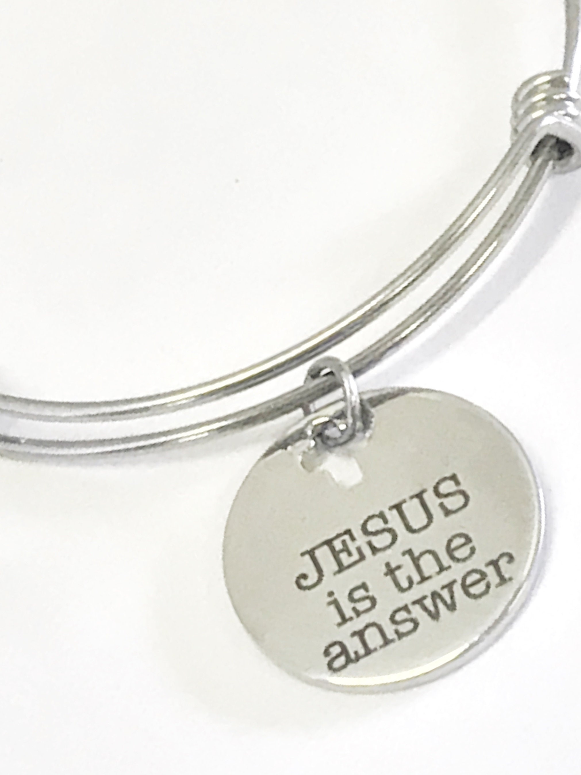 This Christian bracelet would be a great gift to remind the wearer that no matter that questions we face in life, Jesus is the answer. It has a stainless steel laser engraved charm that says "Jesus is the answer".