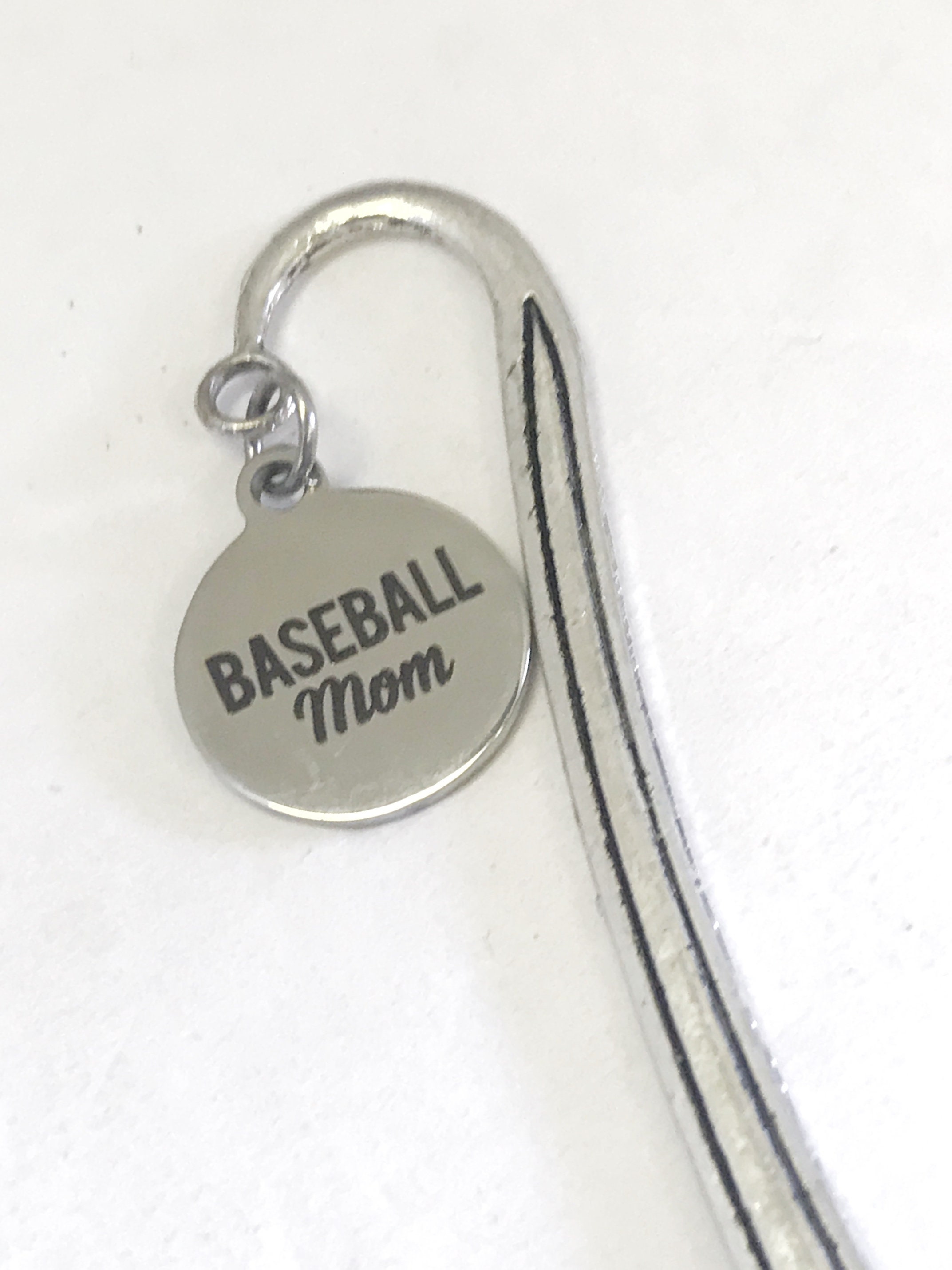 This Baseball Mom bookmark would make a great reader gift, Bible bookmark or planner bookmark. It has a charm that has a stainless steel laser engraved charm with "Baseball Mom" on it.