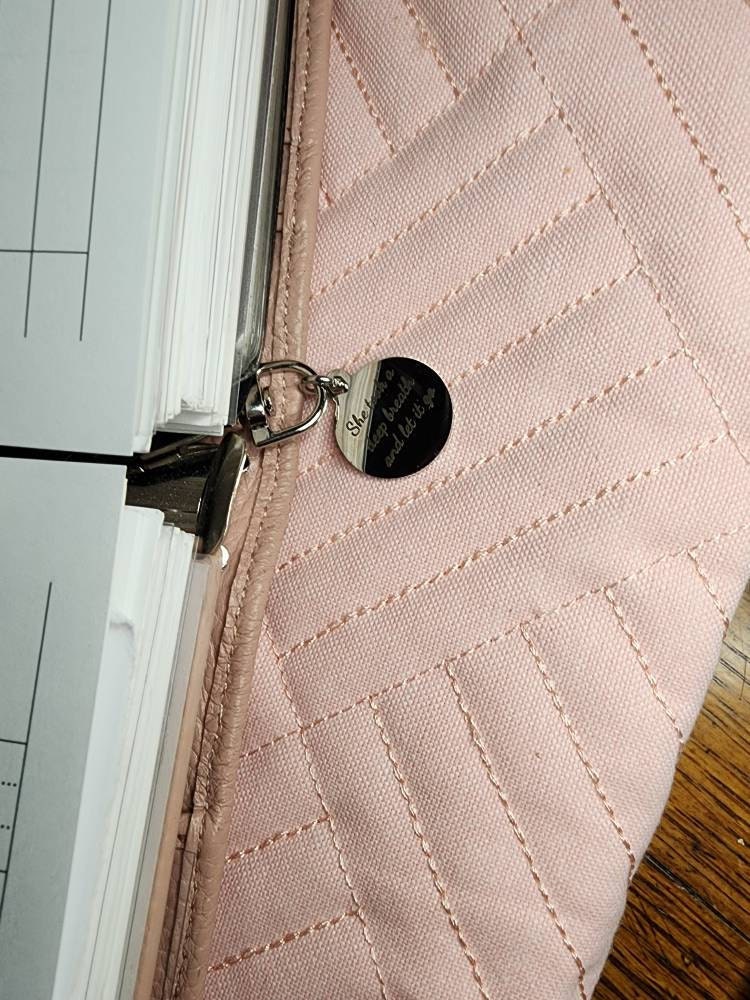 This is a great encouraging gift zipper pull or purse charm which includes a stainless steel laser engraved charm with "She took a deep breath and let it go" on it.