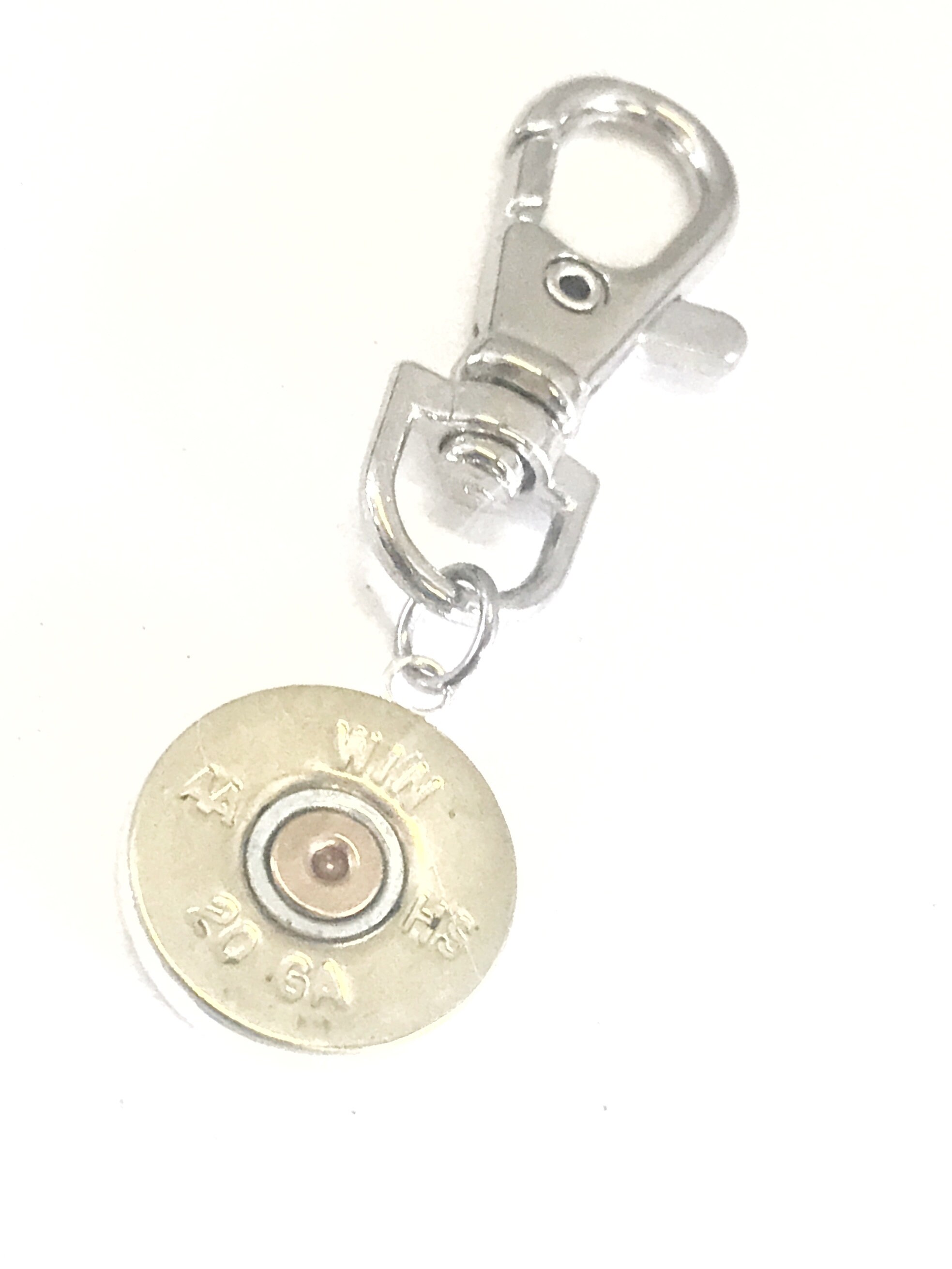 This is a great gift zipper pull or purse charm which includes a spent cut 20 gauge shotgun shell head. This would be a great gift to remind someone to shoot for the stars or as a gift for a shooting sports participant.