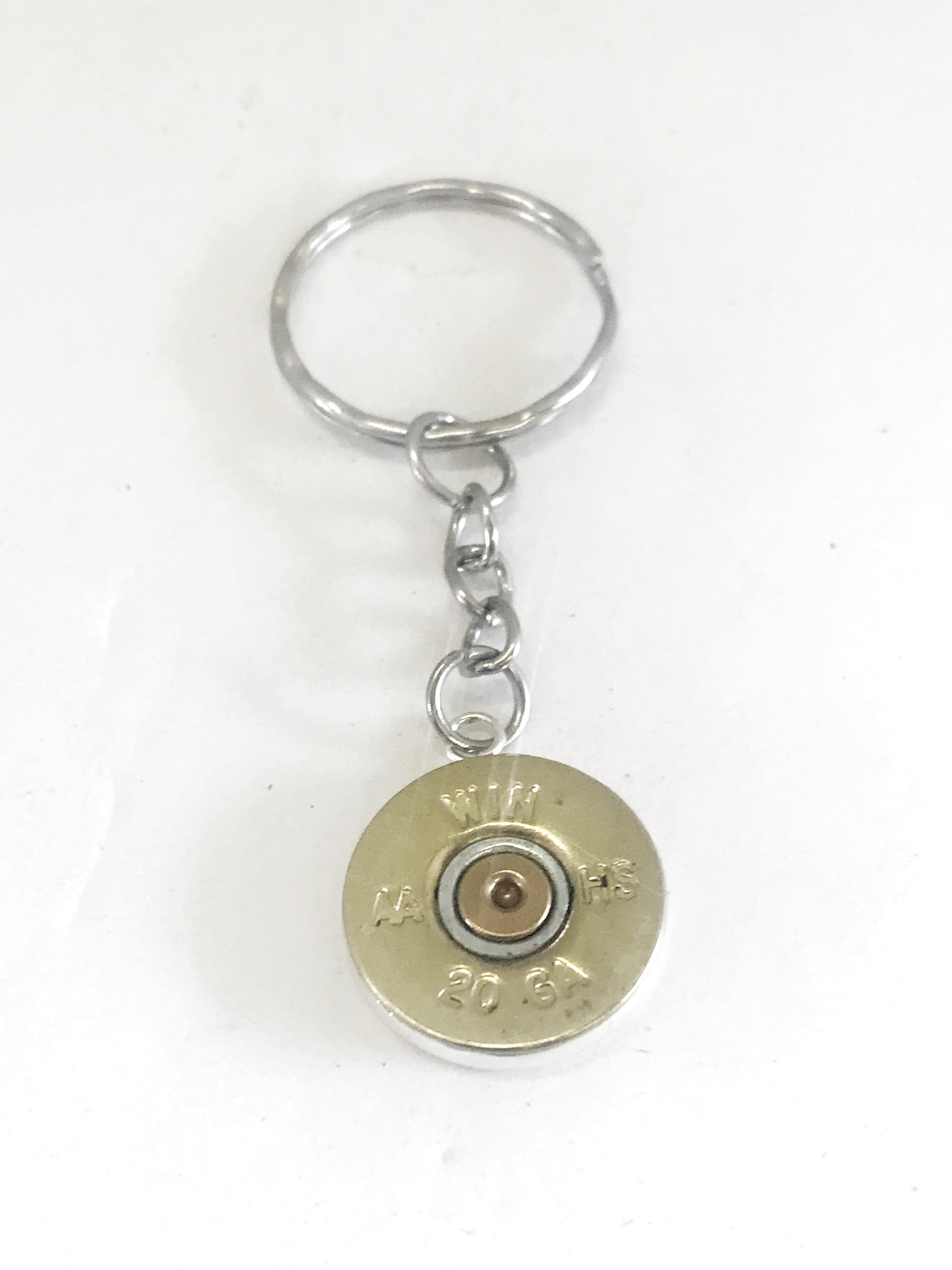 This keychain is a great shotgun shell keychain gift. It has a cut 20 gauge shotgun shell head on it. Due to the nature of these spent shells, each item will be unique and may vary a bit from the example shown.